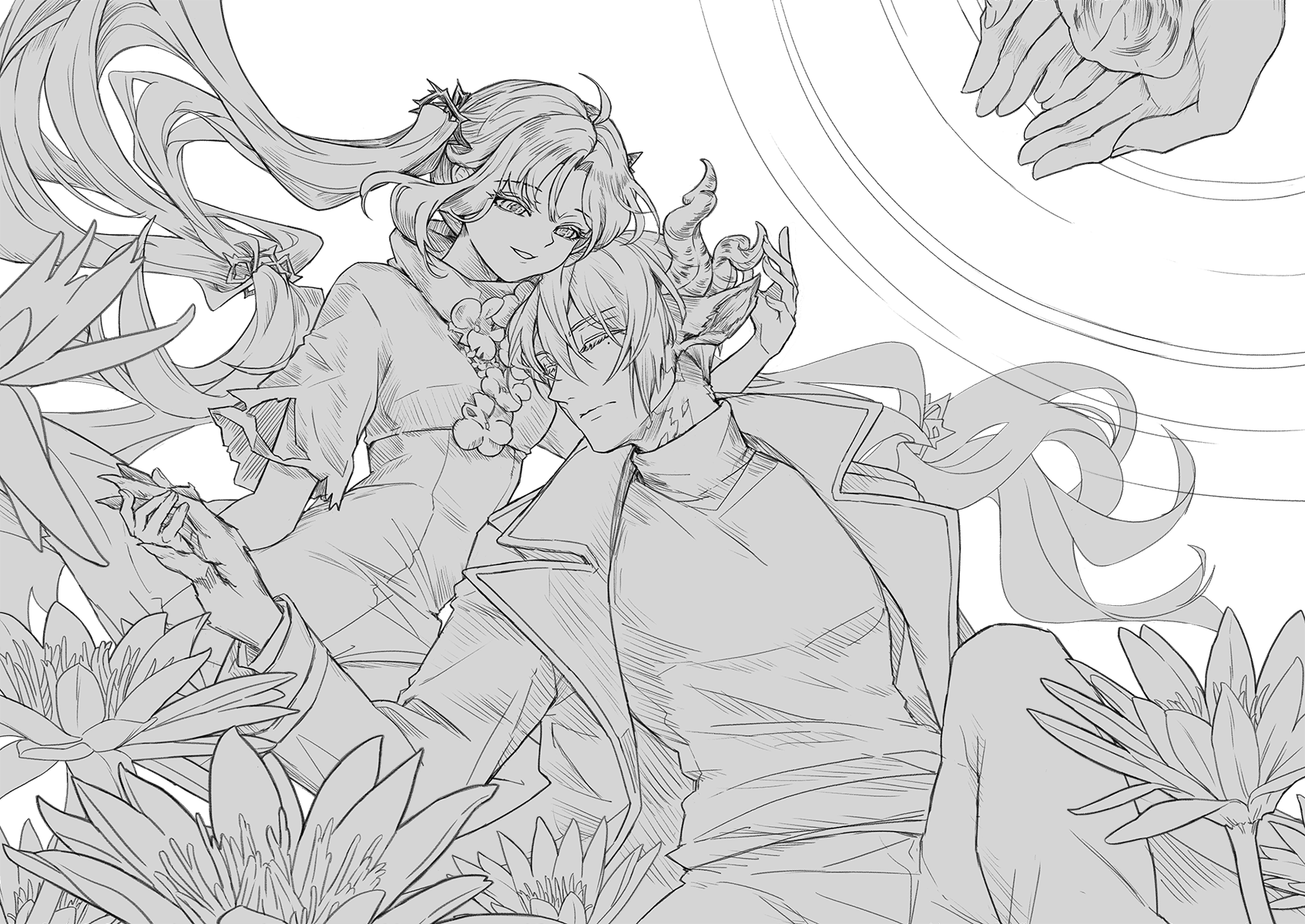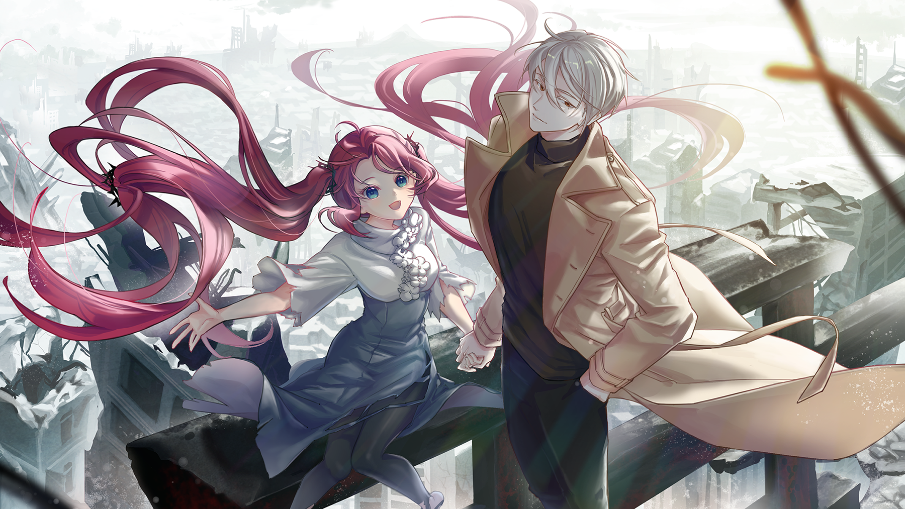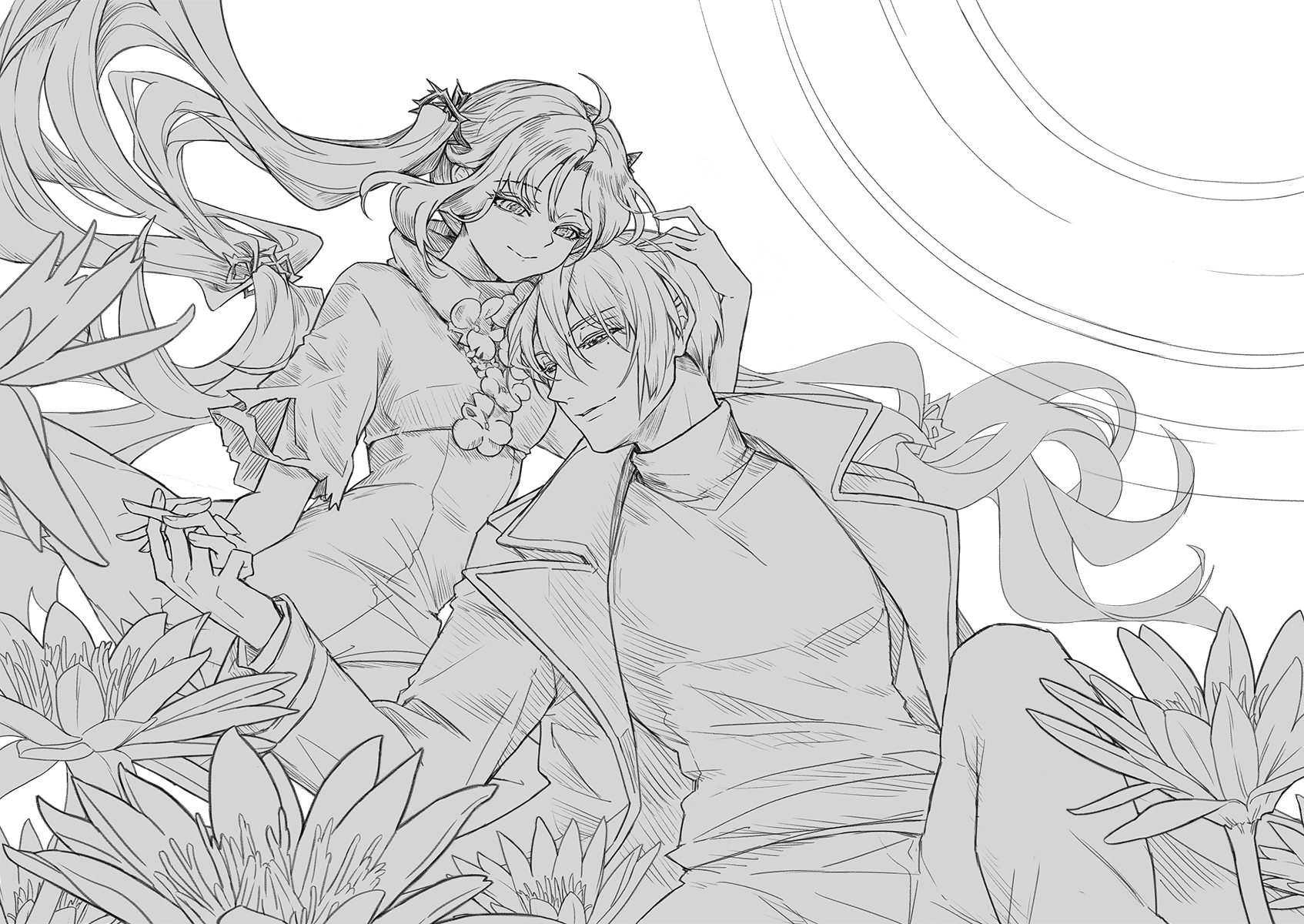 這次噗首圖真的好漂亮,感覺課長在上色這一塊抓到了好有趣的打光方式,整個看起來又立體又精緻,有種很酷炫的3D感(爆炸,輕柔的光讓法奴絲的大髮辮有著空氣感,廢墟也好美,想想他們就在這塊廢墟行走並且相處了那段重要的時光就覺得很浪漫