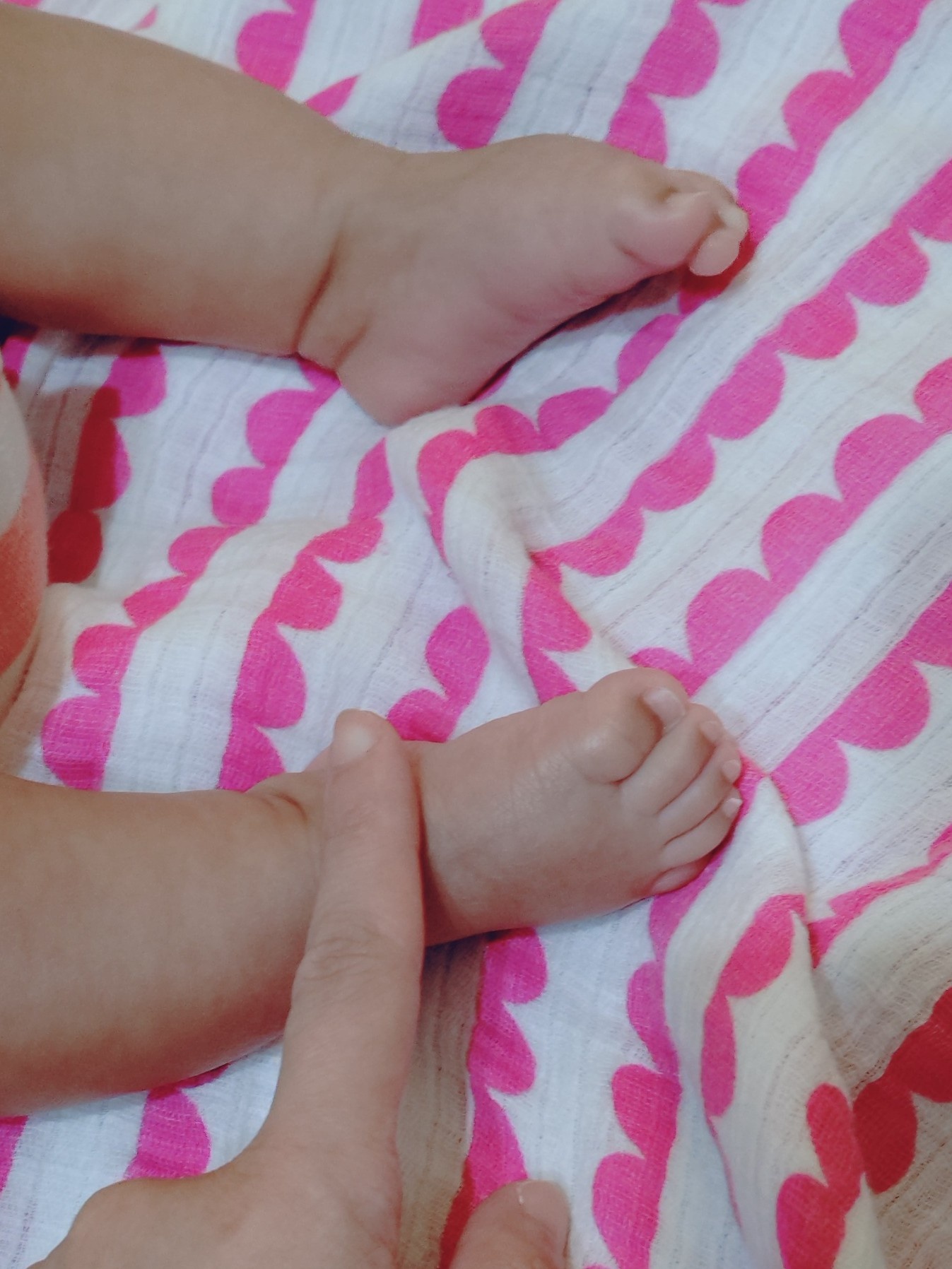 : 他現在好像才…(數)不到四個月,因為是早產寶寶如果以足月算的話還不滿兩個月,顧起來正累的時期