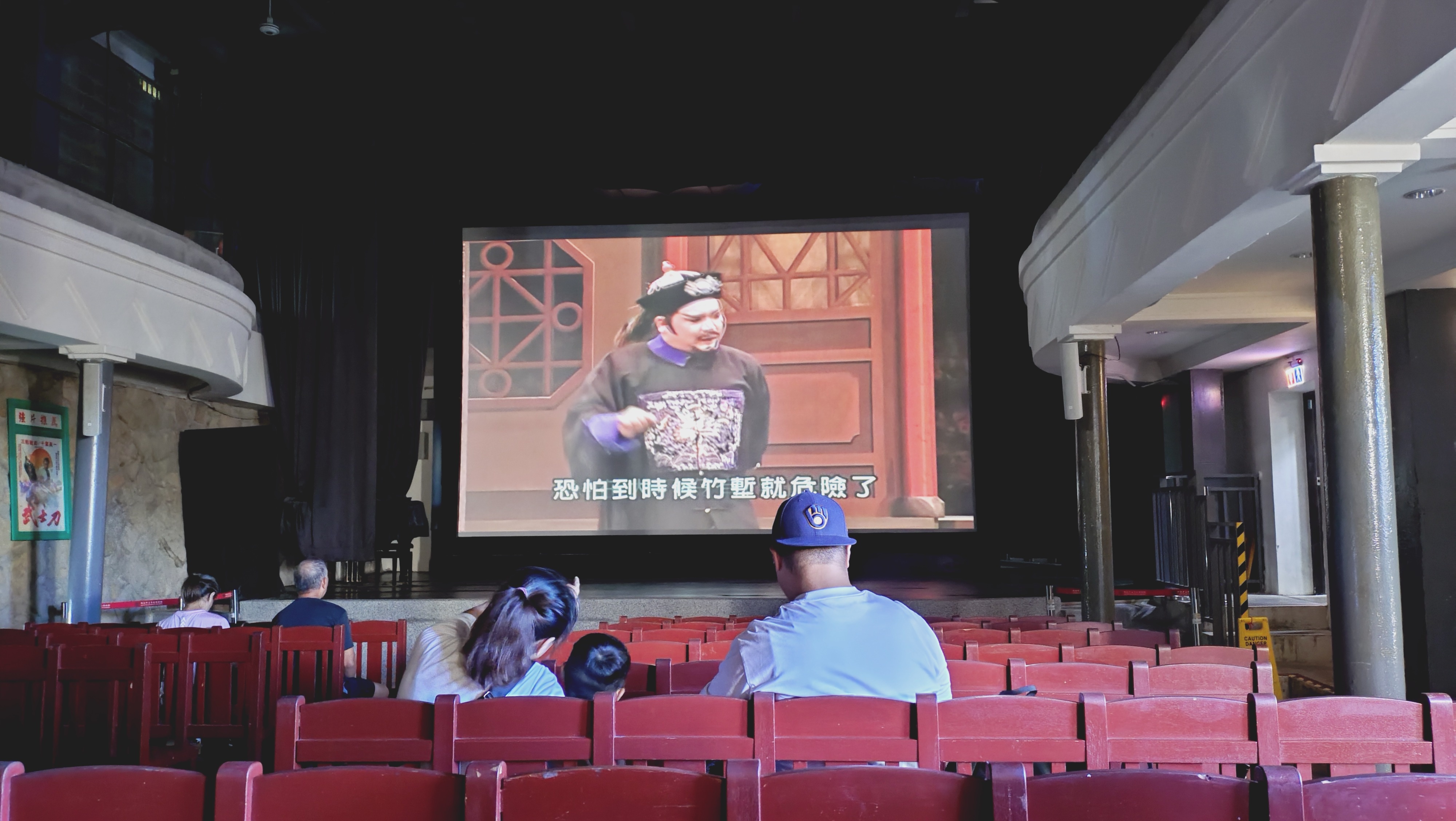 (都市廢人爬樓梯超喘)下到九份老街一路吃吃喝喝,昇平戲院這次竟然在放影片!不過二樓不讓人上去了