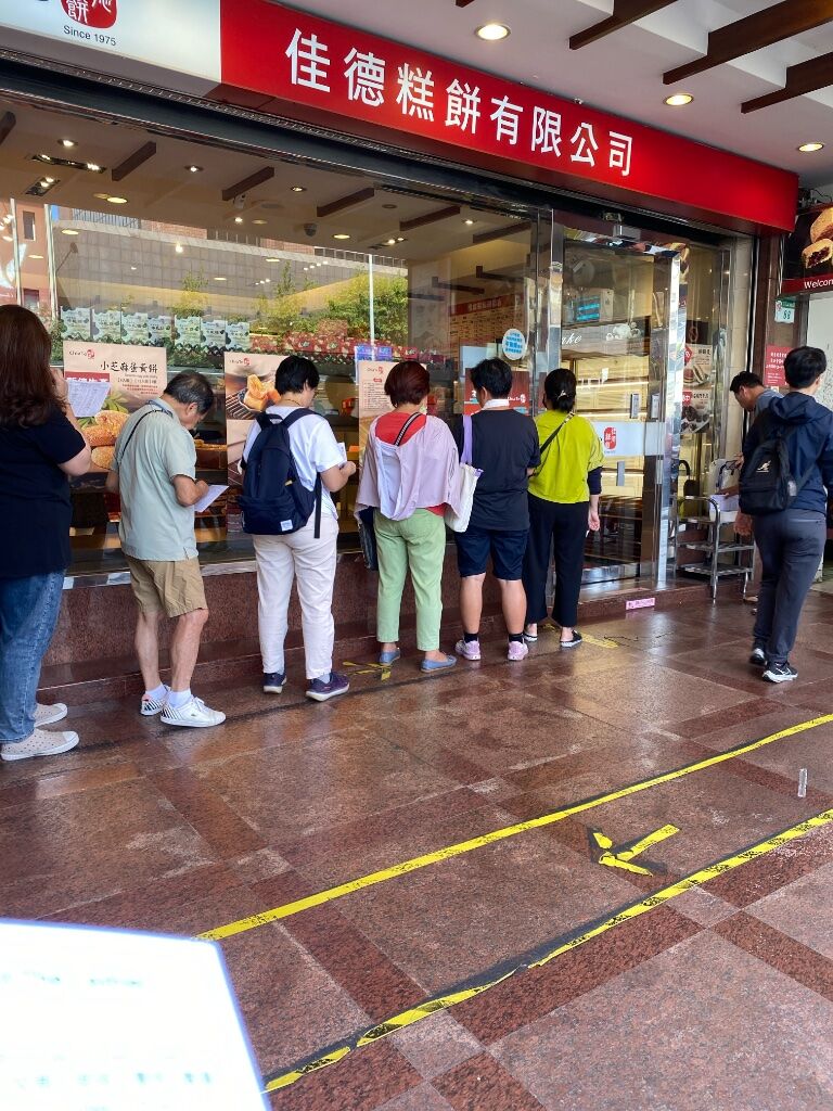 來到佳德購買月餅、鳳梨酥,大排長龍。中秋節前的應景日常。