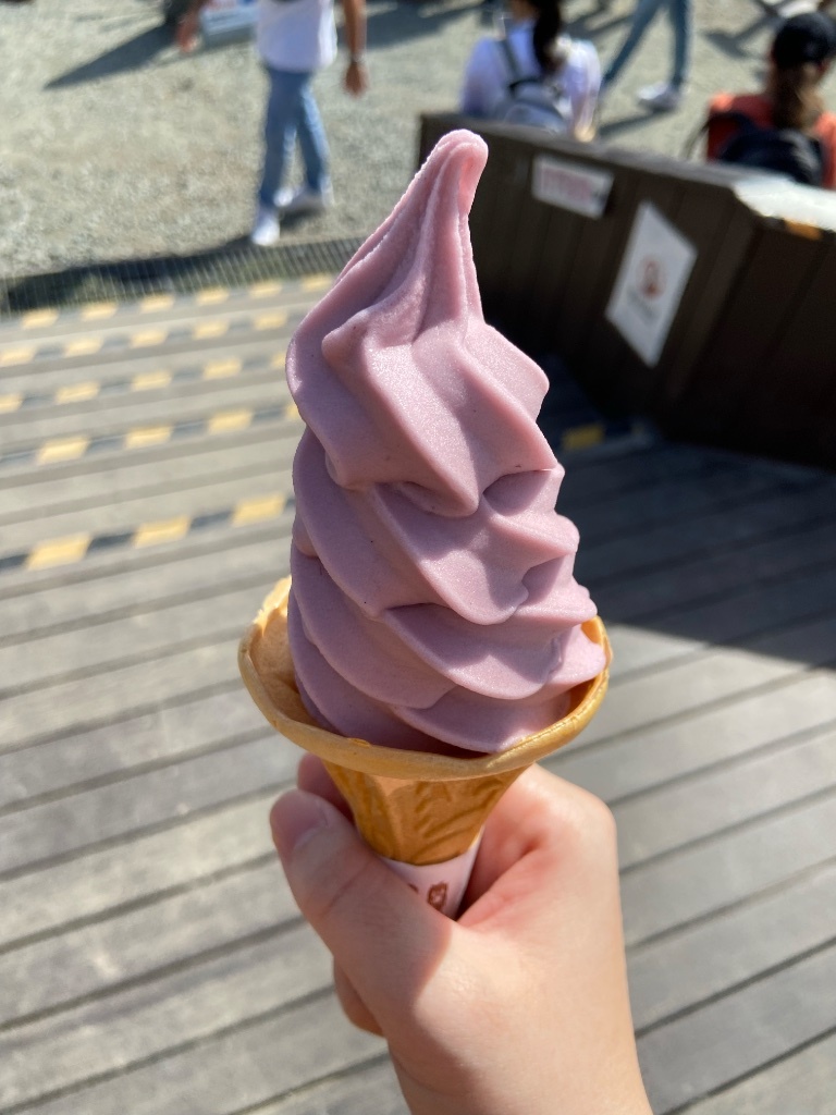 在山上的茶屋吃冰淇淋,選了季節限定的巨峰葡萄口味,好甜