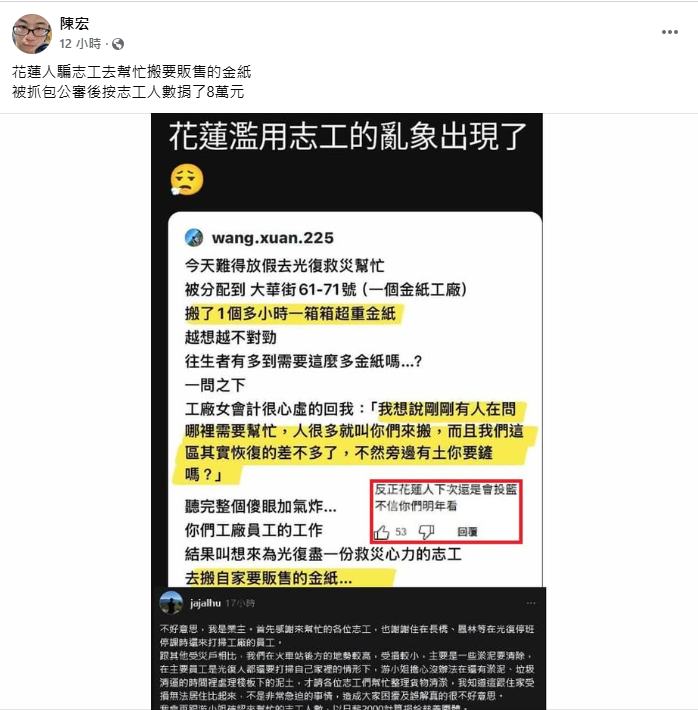 @Nomisas - "ooyuan0802: 先說重點 我家人今天從恆春去花蓮幫忙,結果到現場沒多久就...