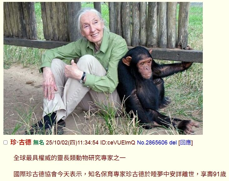 我小時候就看過什麼"黑猩猩奶奶珍古德"一類的文宣 配圖還是黑白照...