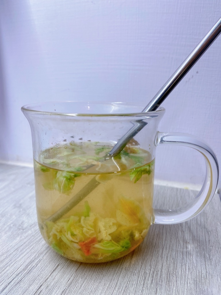 回家之後發現,這個高湯意外拯救了我之前為了儲備糧食買的乾燥蔬菜,高麗菜烘乾過會有一個我很不喜歡的有點膩口的甜味(很像以前便當在蒸飯箱裡蒸太久的味道)