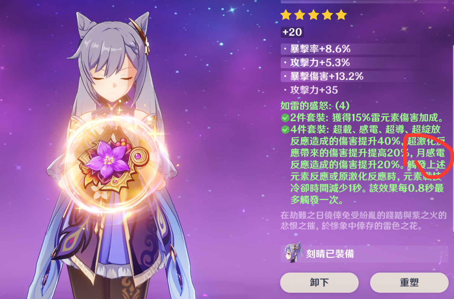 有提到感電的,都有補上月感電,以遊戲內的為準