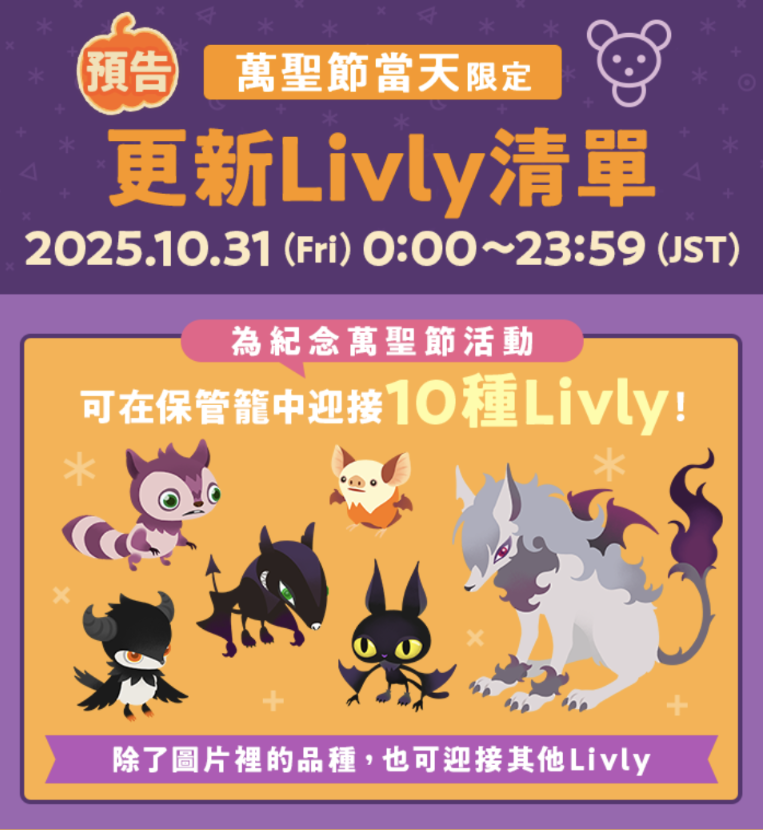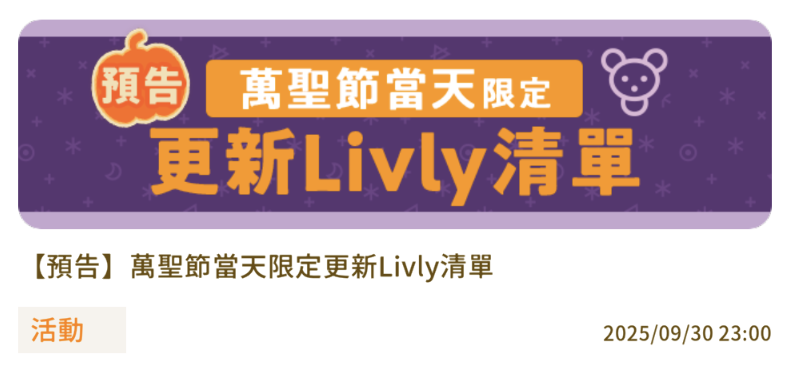 【萬聖節當天限定】更新Livly清單