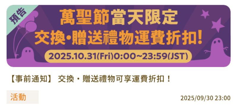 【萬聖節當天限定】交換.贈送禮物運費折扣