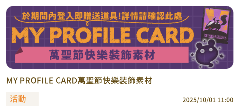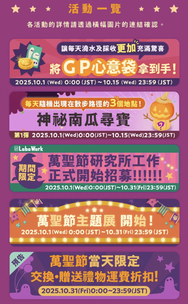 【活動導覽】裡有萬聖節活動行事曆!可隨時查看相關時程~