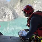 我們投下 3 枚衛星浮標,讓湖水的變化能被即時看見;放入探深球,測量未知的深度;甚至吊掛特搜人員,親身試探地面狀況。