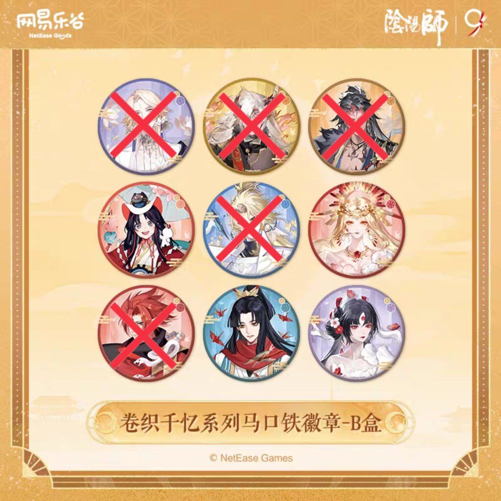 試拆徽章B盒一盒,圖上打×者表示已有人帶