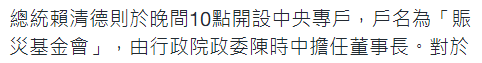 "因募款產生的行政、人事等作業費用,概由賑災基金會自行支出,不使用本次募得善款。"