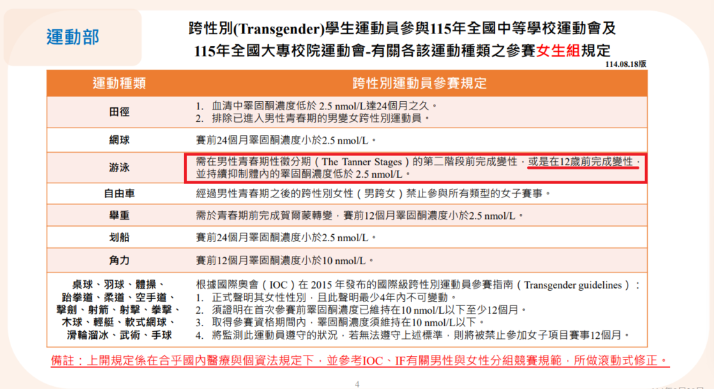 我來試試看給DPP狡辯: 台灣現行法規不允許12歲以前做變性手術或服藥,所以這等於實質禁止變性人參賽,這就是DPP沒有想要推的證據!