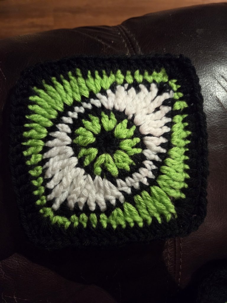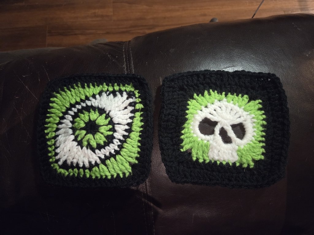 Eyeball granny square complete!! It goes with my skull square.