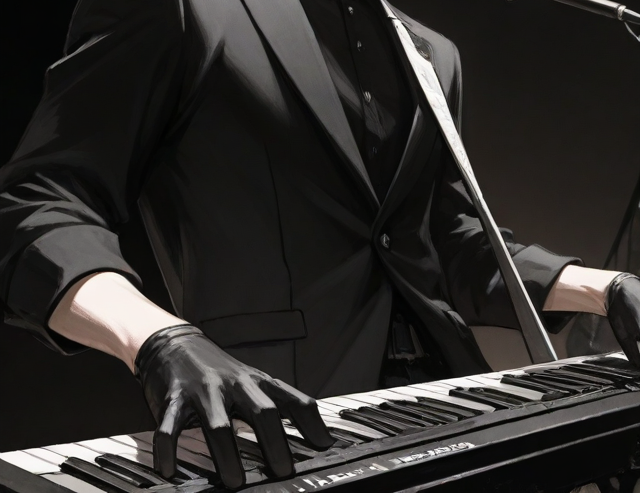 這件雕花刺繡皮衣是首爾場的演出服,他本身會彈鋼琴,不過keyboard大多數是他用來編曲的工具,在舞台上偶爾會推一點簡單的和弦或loop。