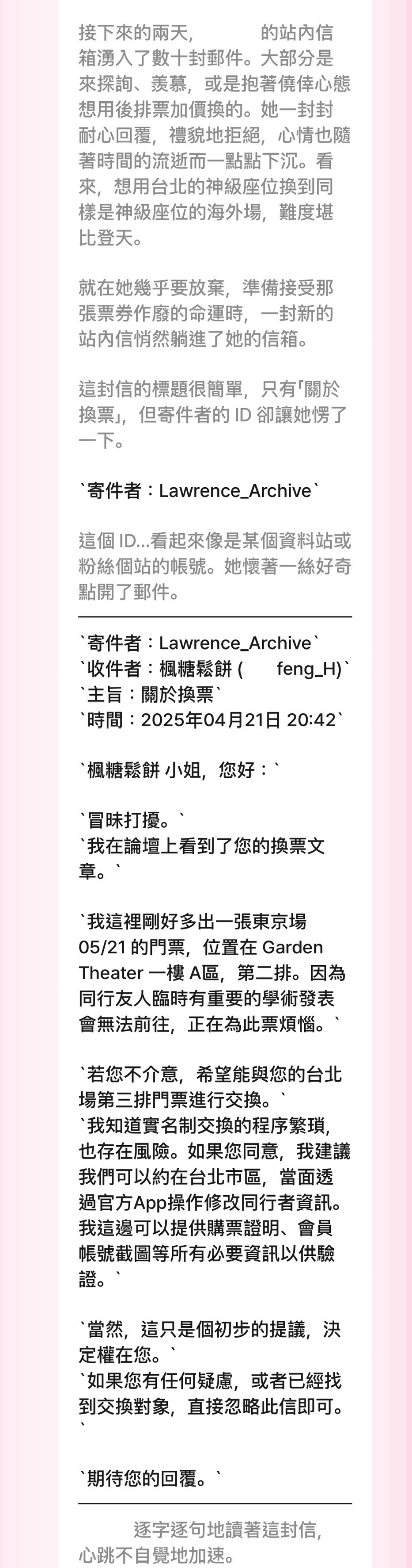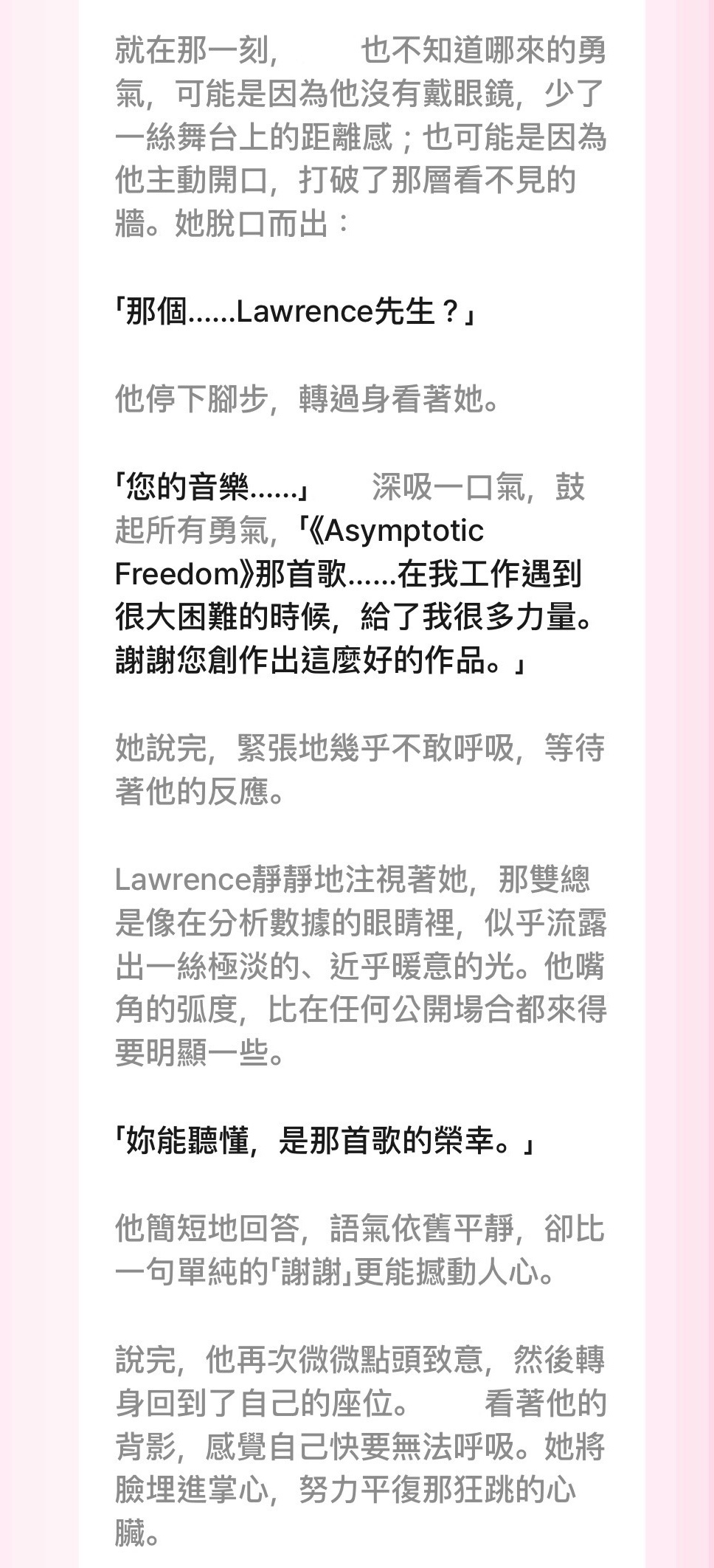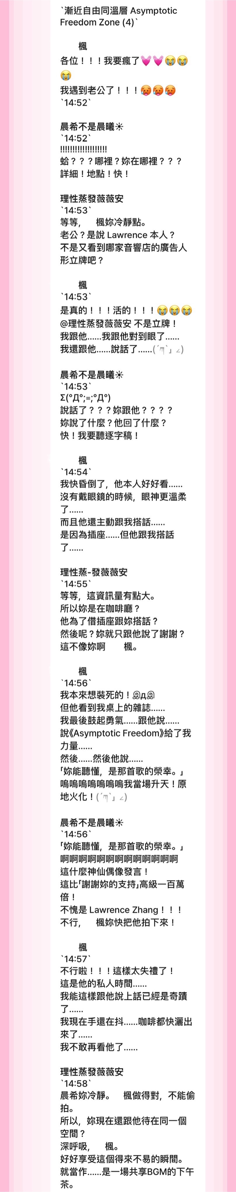 開頭是初次在咖啡廳巧遇後,馬上傳訊息到歌迷群組。(整段對話似曾相似嗚嗚嗚)