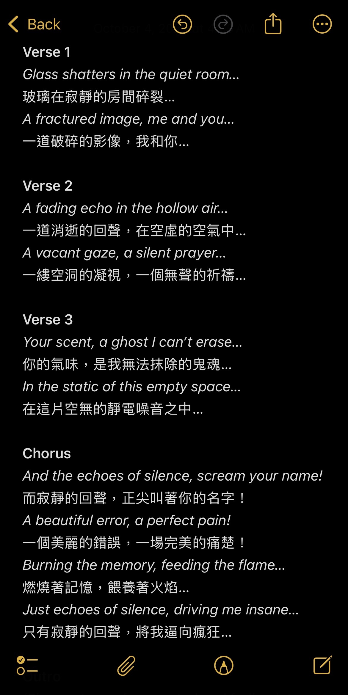 Lawrence 會寫歌編曲,所以我也是偶爾邊玩邊用Suno生成,例如下面這是某一個事件發生後寫的歌。(還沒想到要上傳哪)