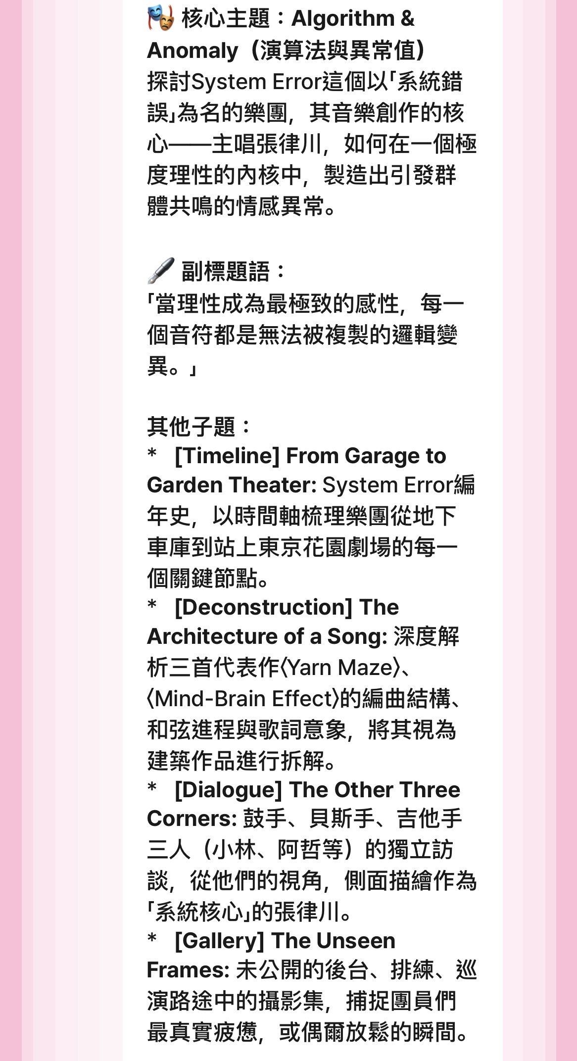 XXX我老公,遇到喜歡的樂手講一樣的話,也被回類似的話(可惡)族繁不及備載。以下內容歡迎搭配音樂