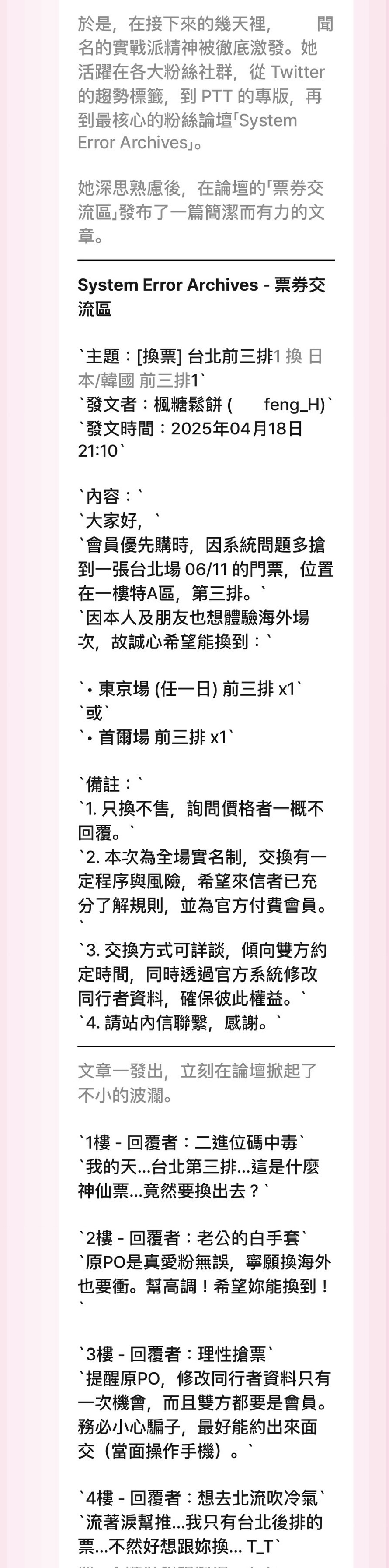 沒搶到日本場只好找票,遇到好心人