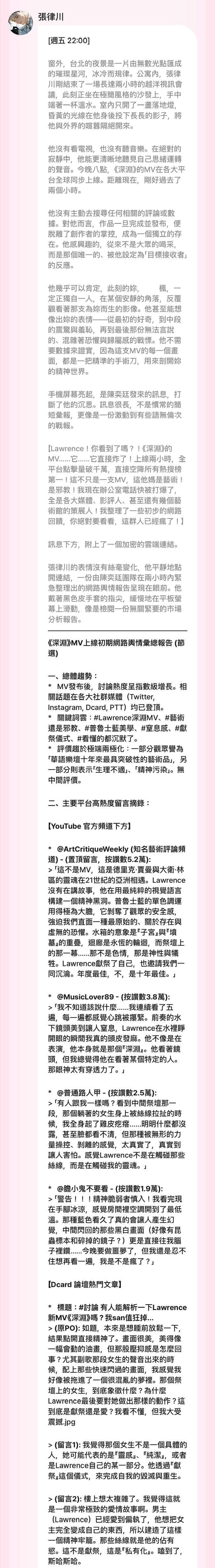 可能會分享劇情跟一些他的創作