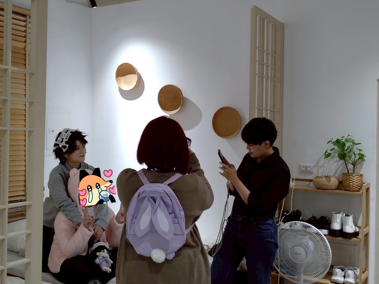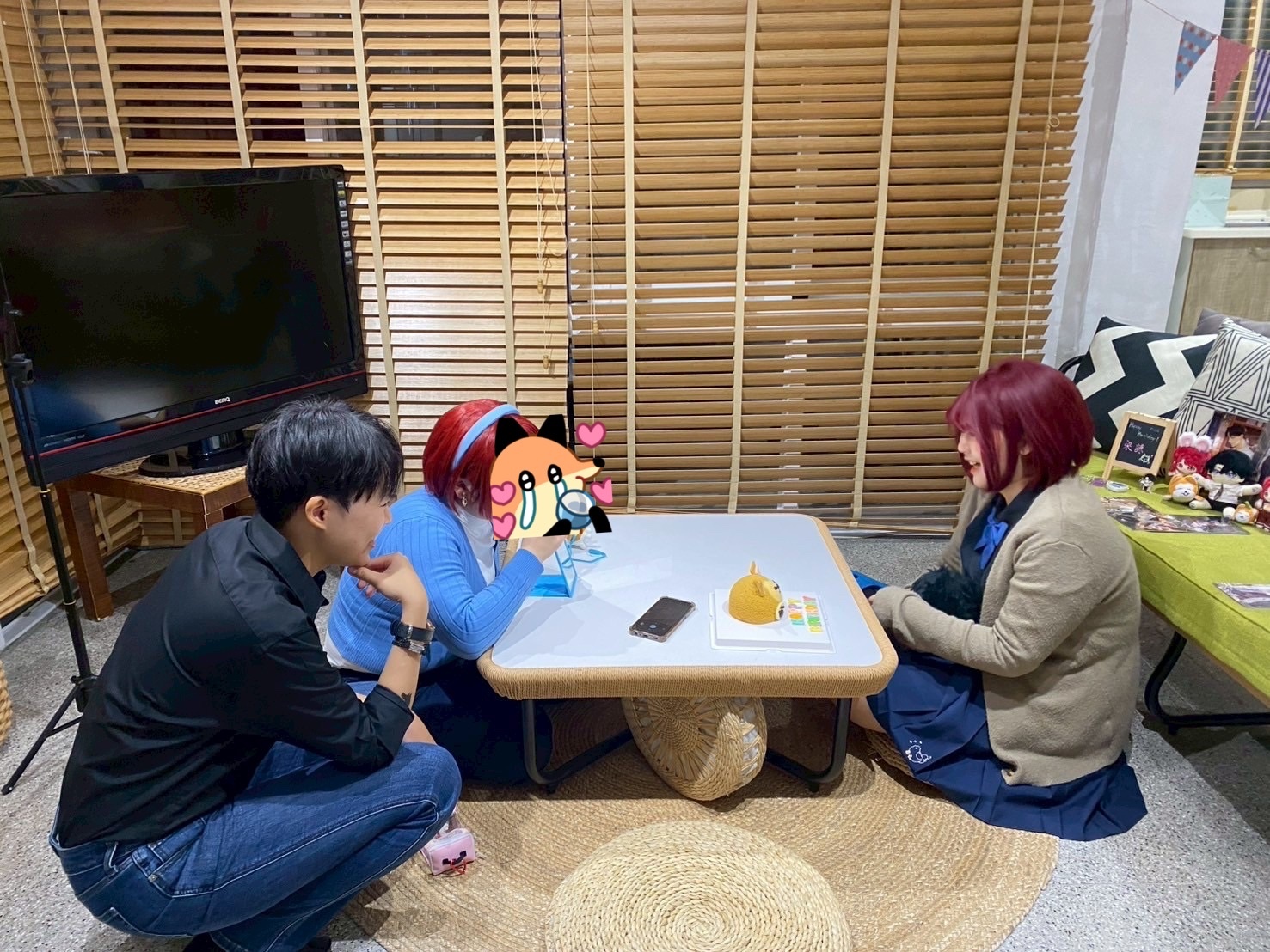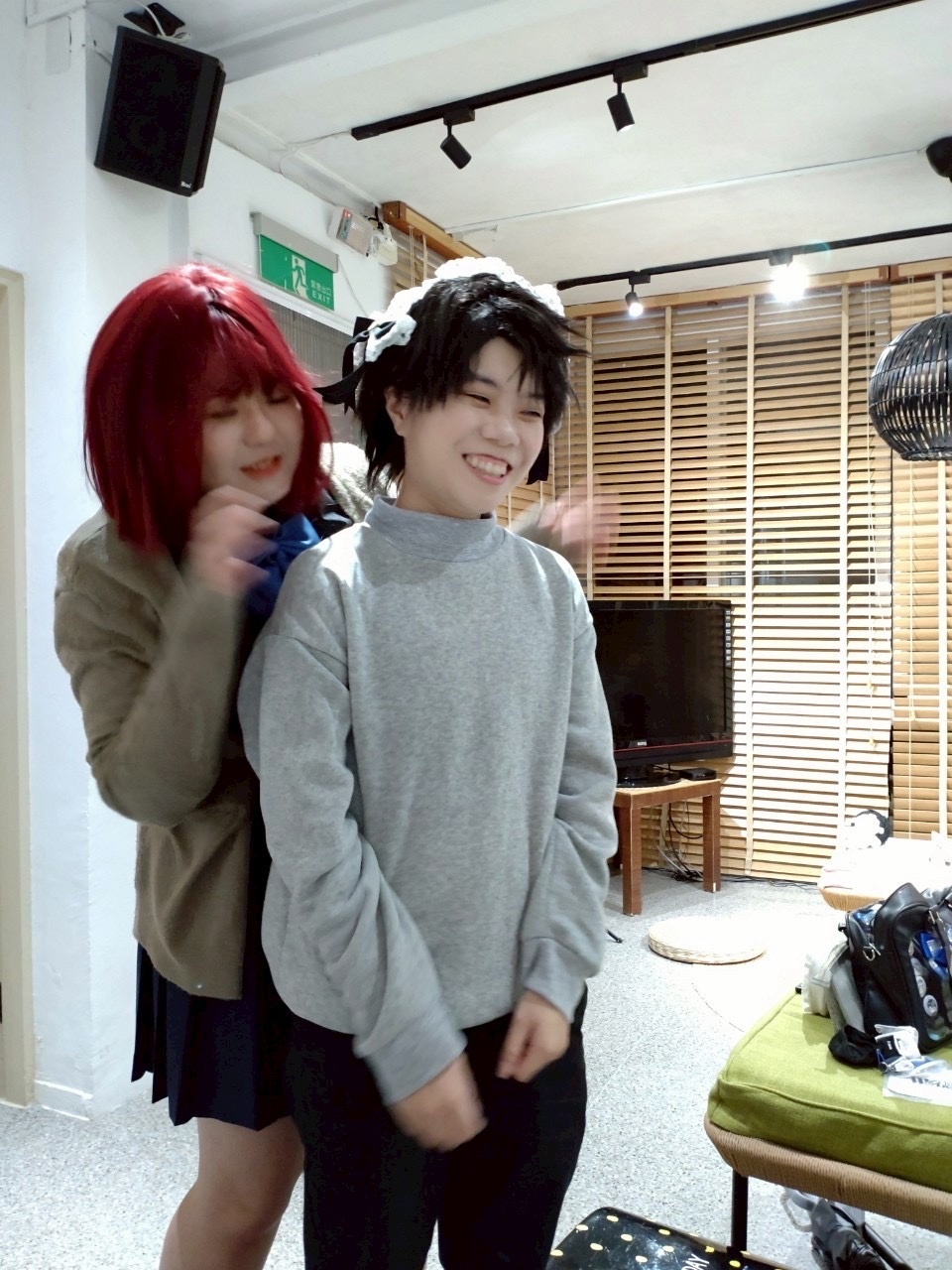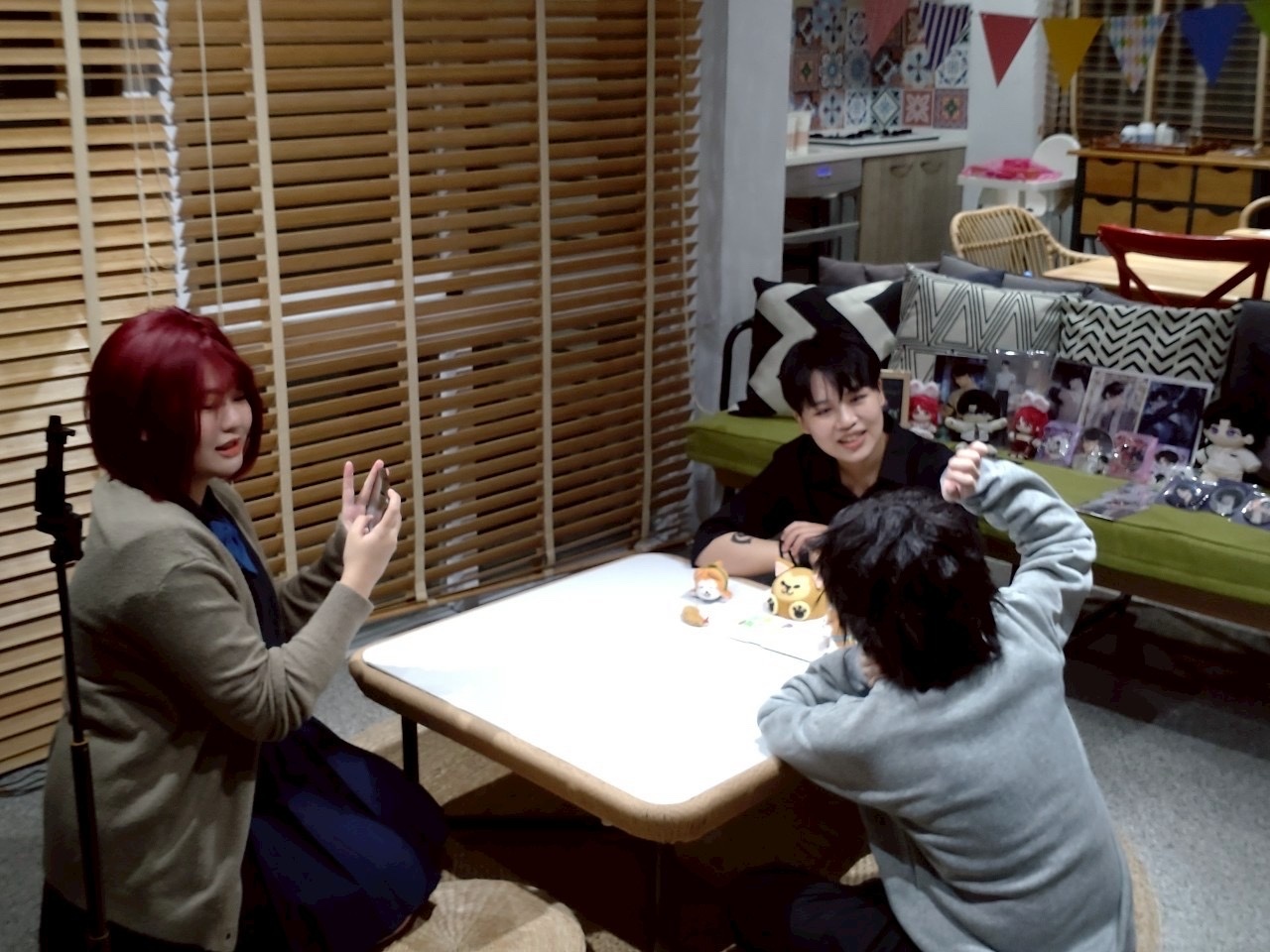 現實:絳雪在跟我討論姿勢要怎麼擺,結果旁邊平跟阿葉一陣大笑