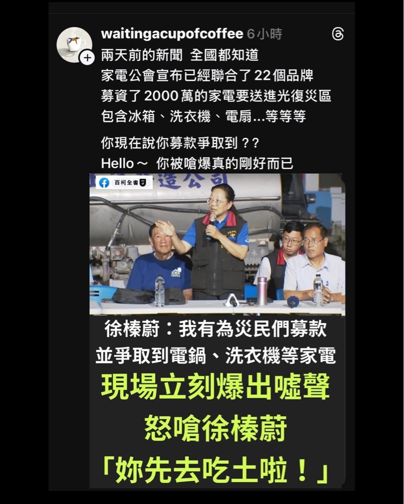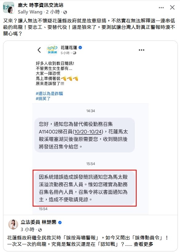 @Nomisas - "carro_tsai:徐榛蔚花蓮縣府先是在救災現場「誤發」了幾次的警報叫大家避難...