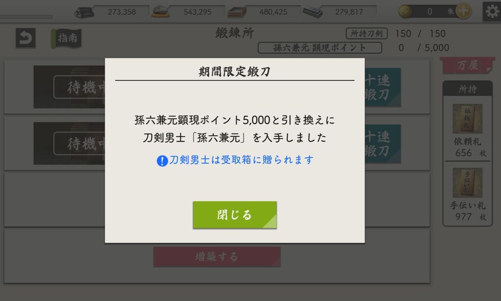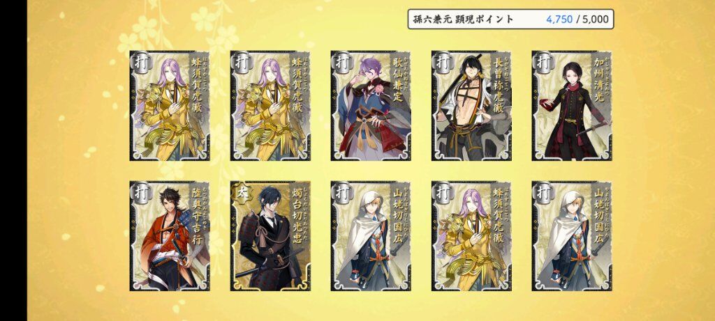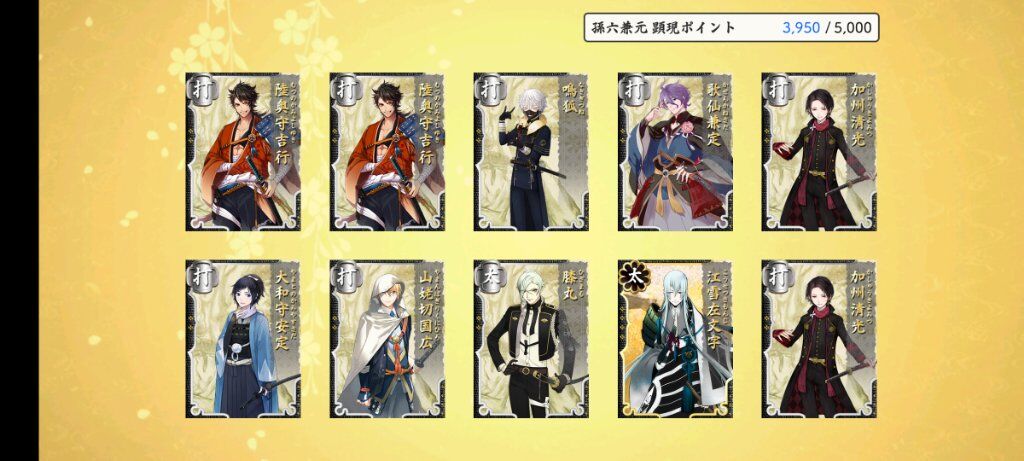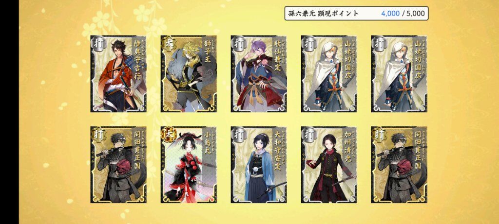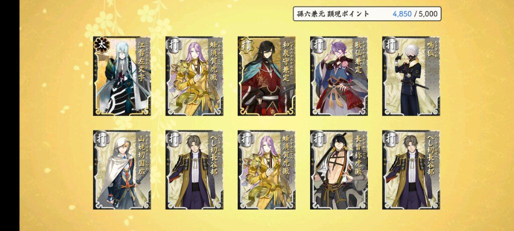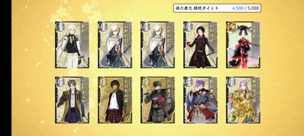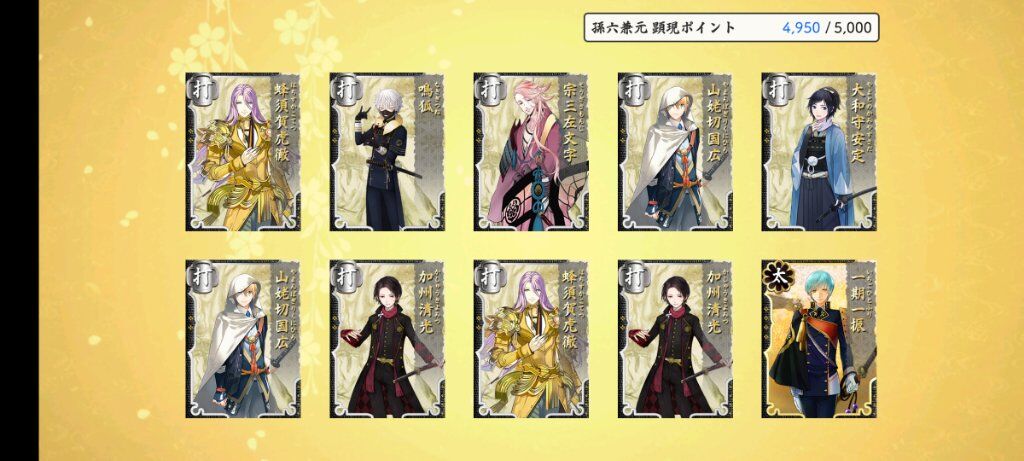 看了一下 繼一期後滿亂舞10的太刀應該就是鶴丸跟江雪了 這次限鍛真的好常鍛出江雪