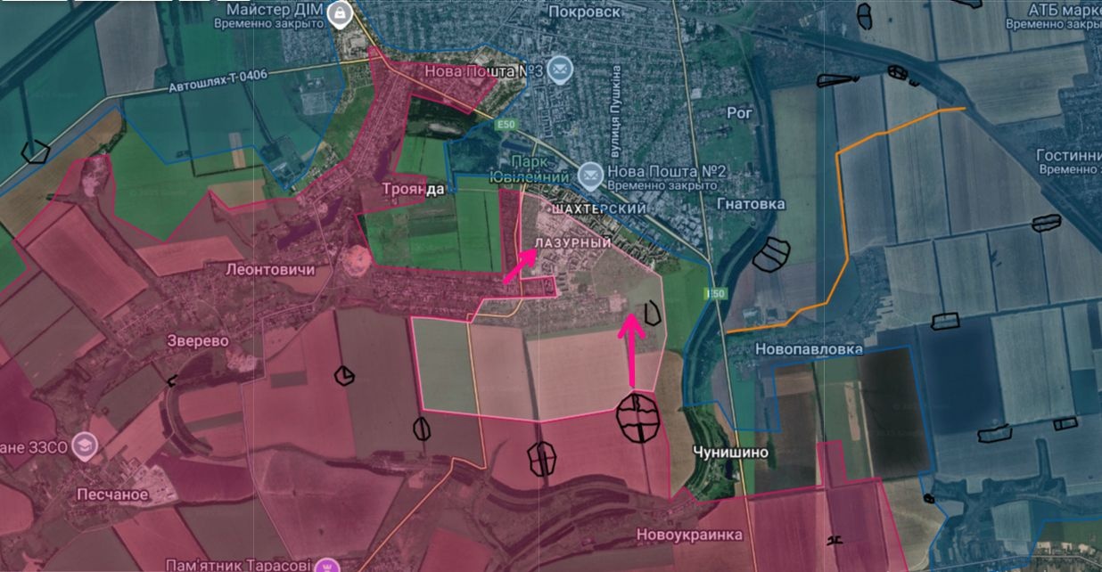 聖誕節以前這邊的俄軍(另外是2GCAA的15、30旅)如果可以確保佔下E50公路兩側,就算非常有斬獲,特別是西側E50進城處如吃下來,那紅軍村基輔軍補給線就少一半,那個進城處有個很大條的公路跨越橋一老早被炸垮在鐵道上,看俄國佬幾時能在那打卡。