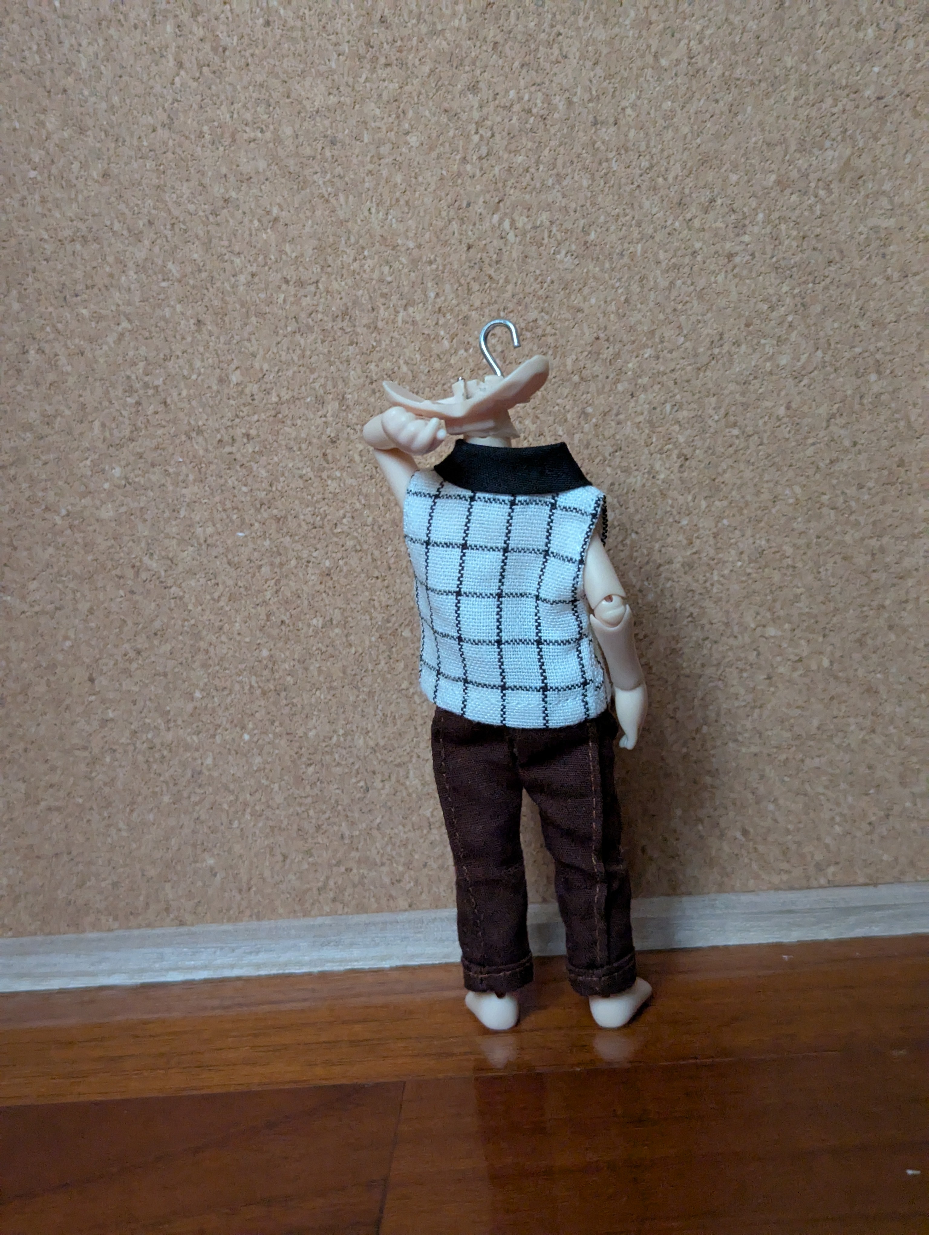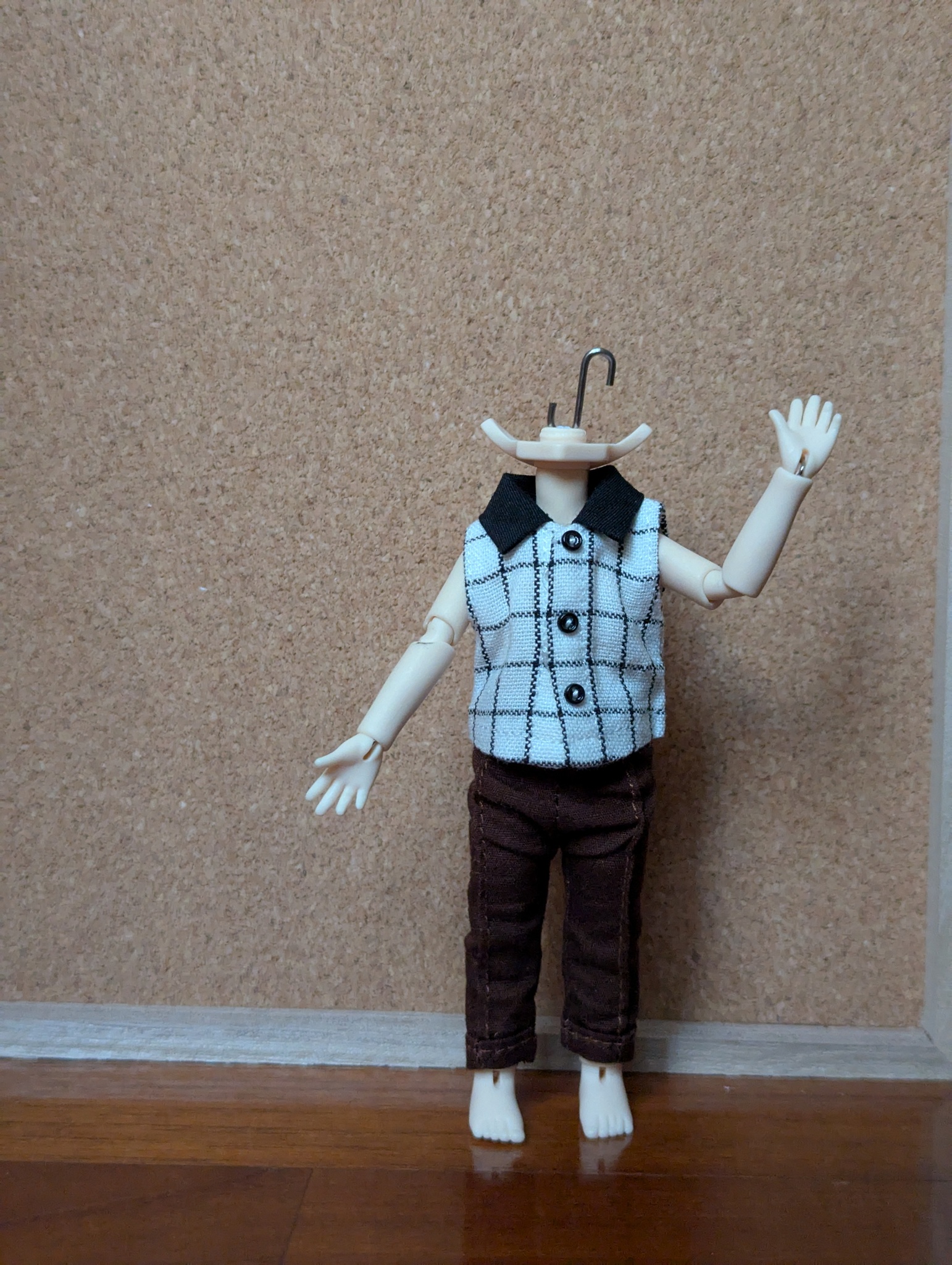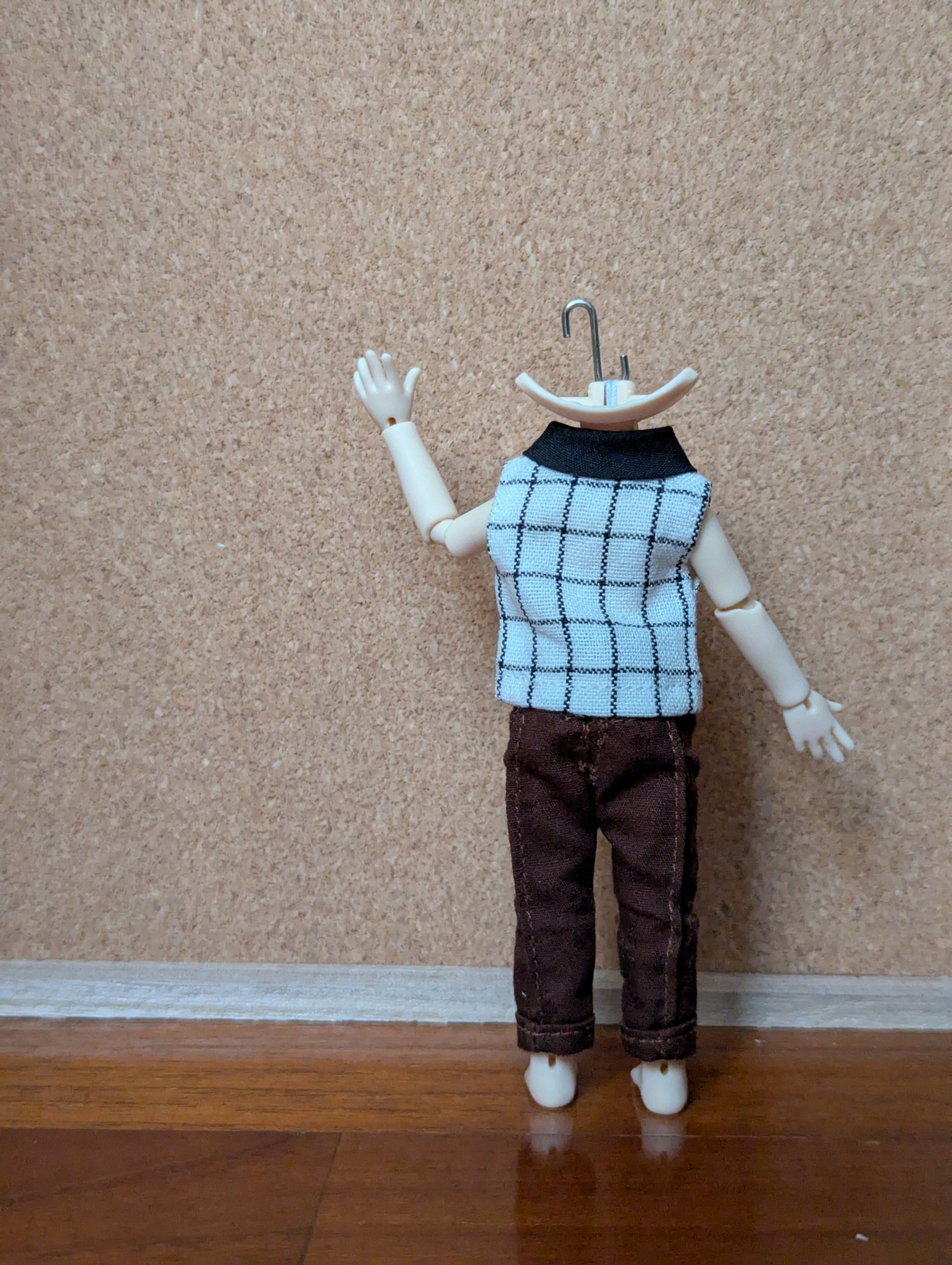2Ddoll的材質比較不容易染色,穿什麼衣服都很方便,就是褲子會卡屁股拉不上來,所以要選鬆緊帶或是有後開的才行。雪糕因為沒什麼曲線,就算是OB11沒彈性的褲子也能穿,只是會比較短,褲子的選擇上就多了不少