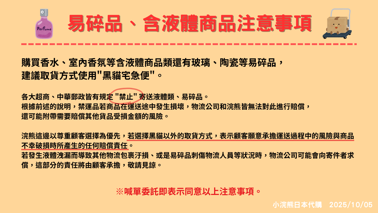 以上兩種商品不跟其他商品一起下單、運送回台,因商品性質會需要另外運送到其他倉庫。若有同時喊單其他商品的團員可能需要負擔2筆境內運。