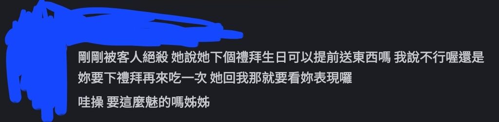 上班有女生顧客跟你說話都以為對你有興趣,在群裡說完還不夠,當天晚上還在語音說:(女友名)真的好好喔好暈喔,我跟客人這樣講話她都不會吃醋耶