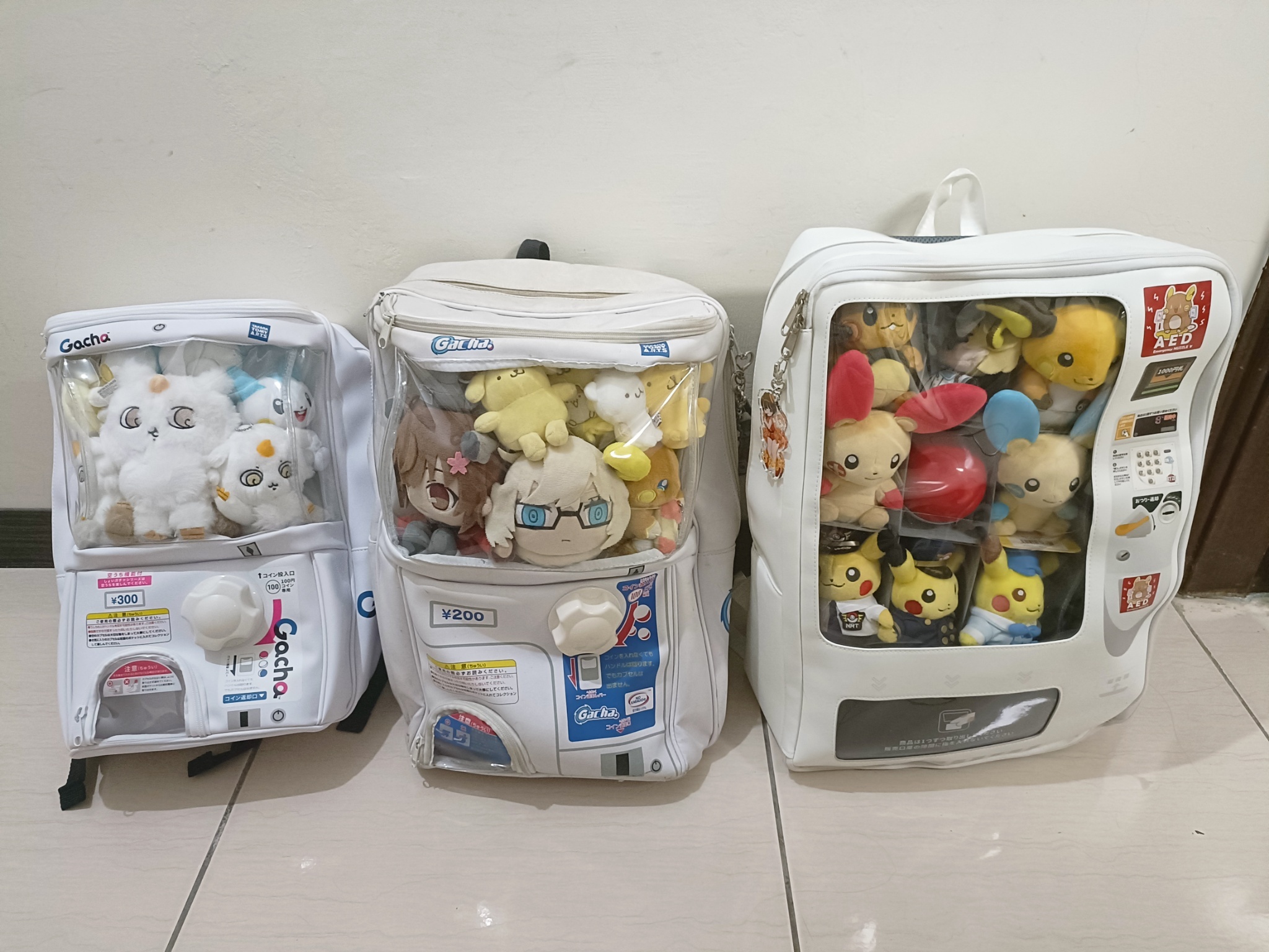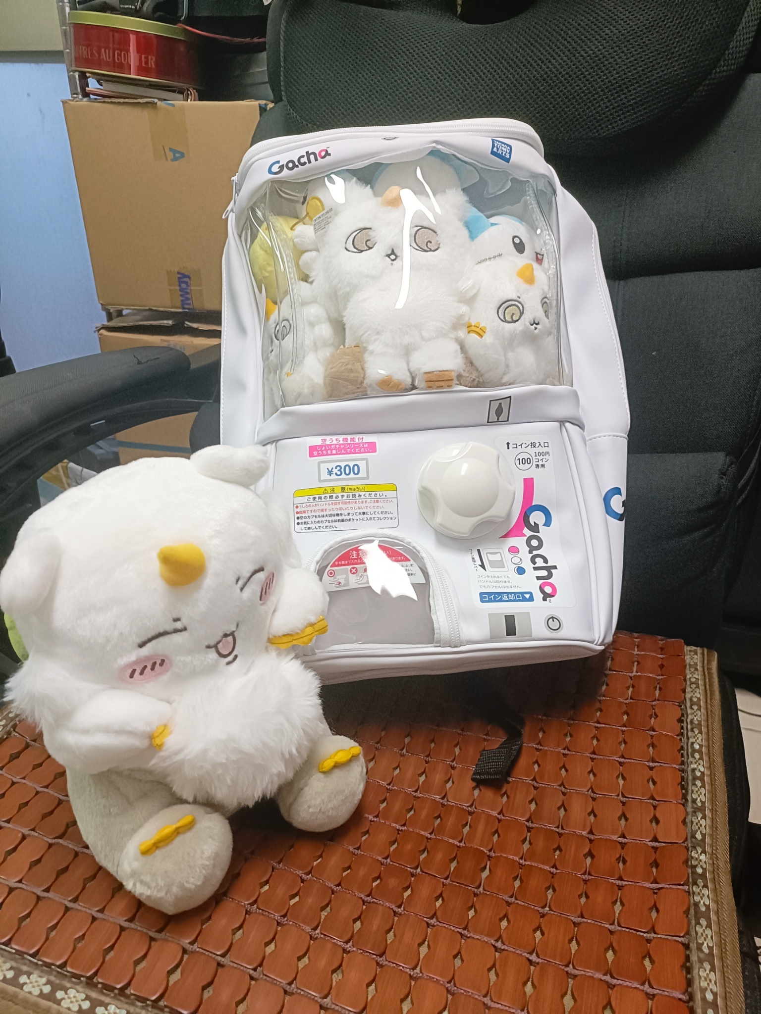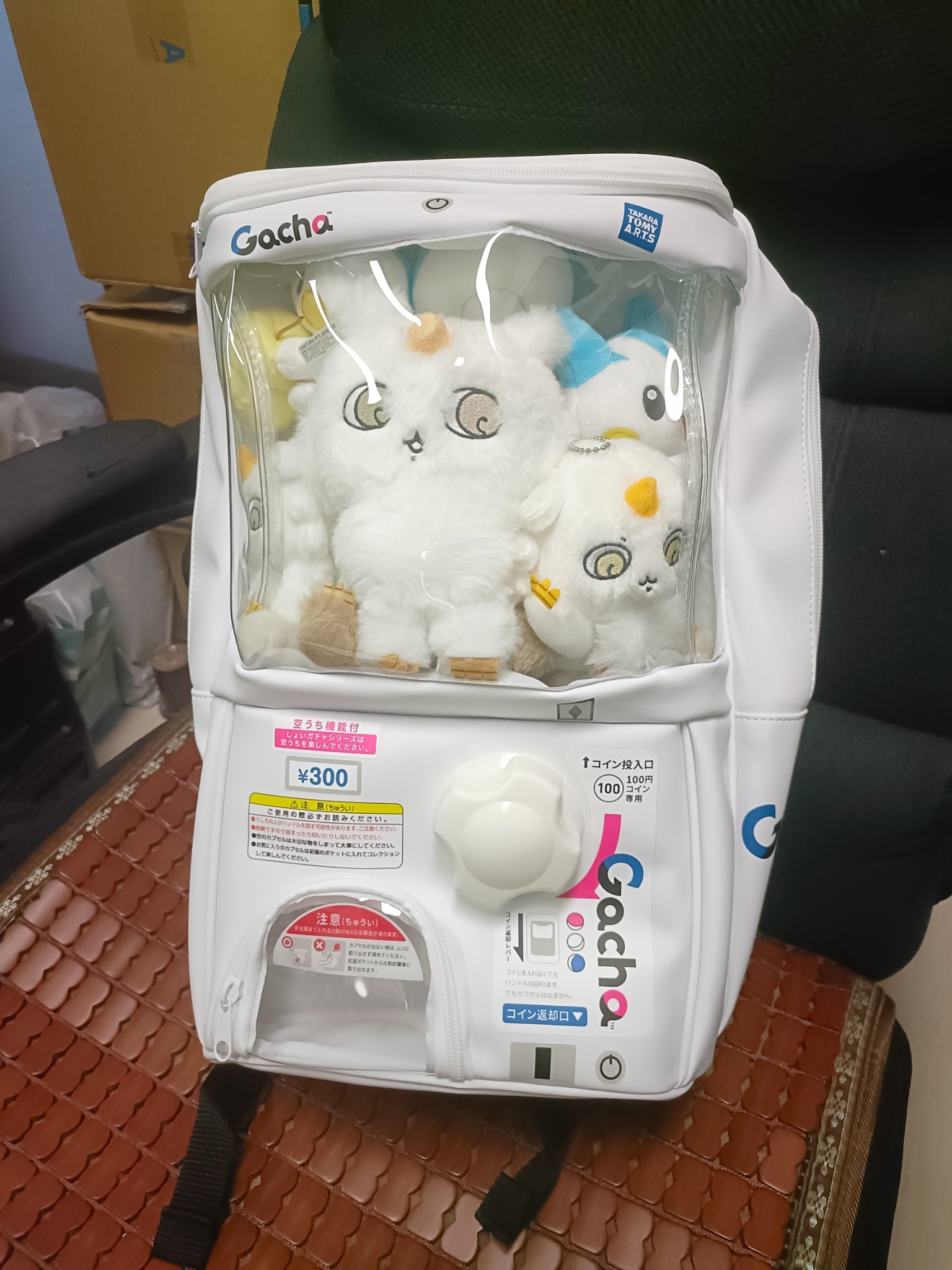 做了那孩子包包,本來想說塞這隻笑笑的結果2代扭蛋機背包太小了www