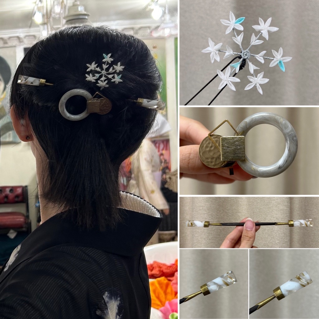 雪花絹布細工髮簪、玻璃笄