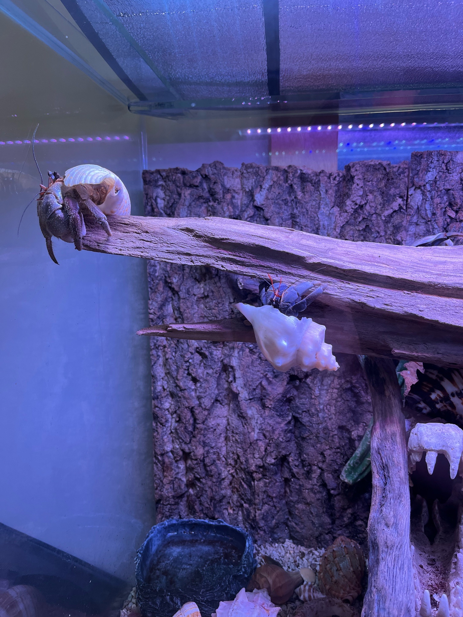 : 他的寄居蟹有各式各樣的背殼一大堆了,但是透明的我覺得...果然什麼物種都還是需要隱私