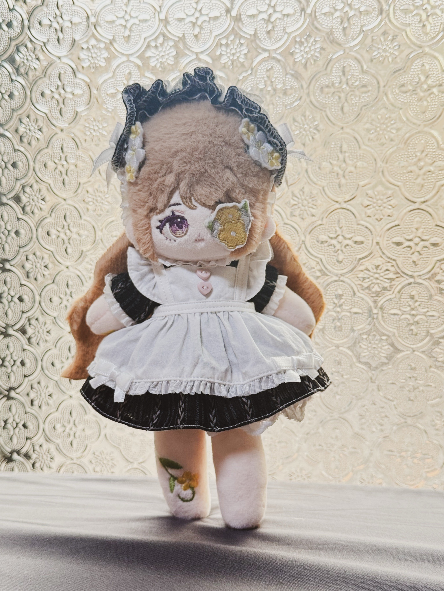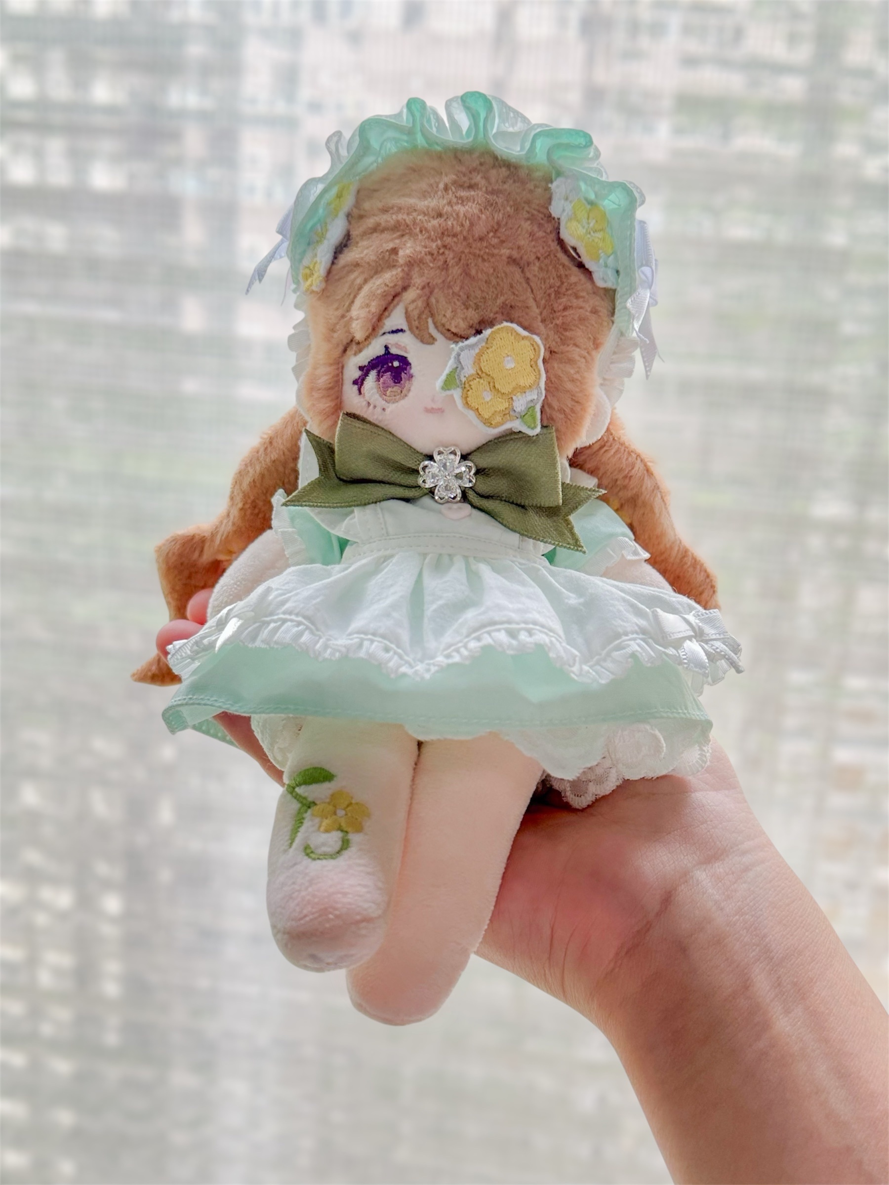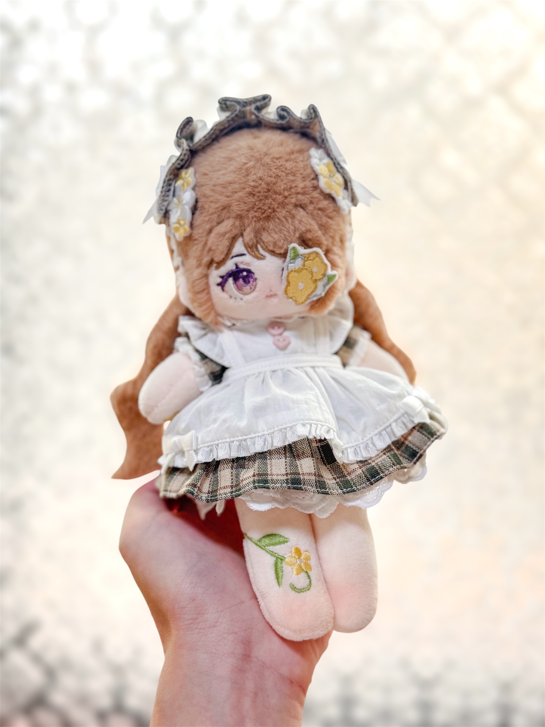 細節:總長18公分、精品絨(玉兔絨)頭髮、波浪狀雙層後髮、三個磁吸刺繡貼。