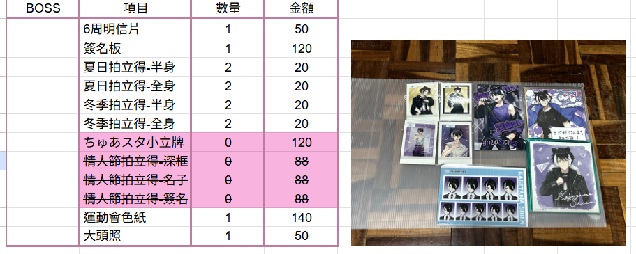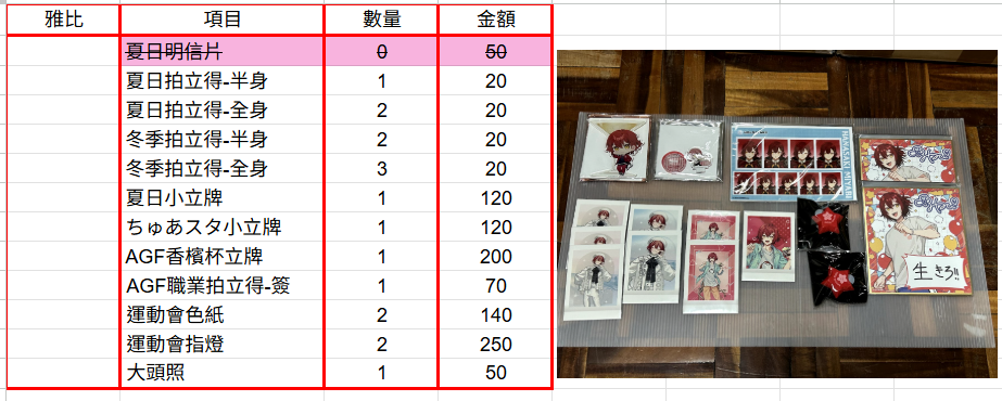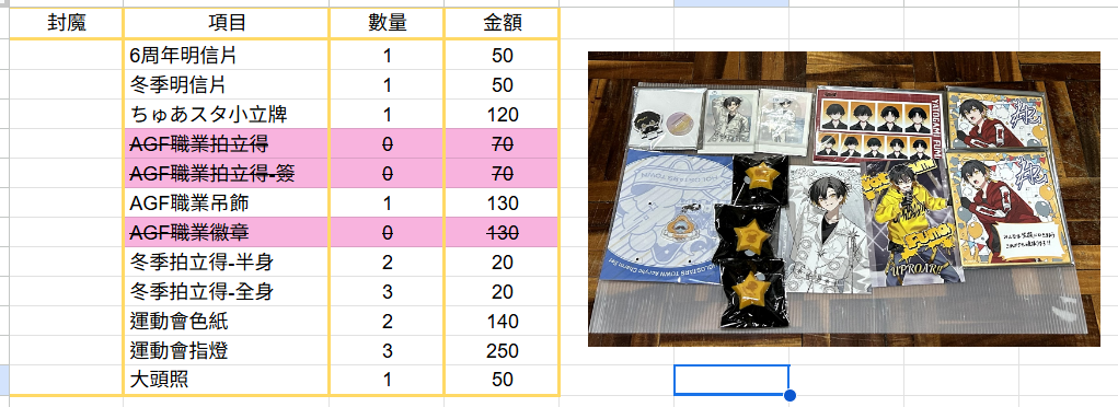 下午5點-6點活動結束,會將一些50元以內的、2.5次元演員生寫當無料贈送