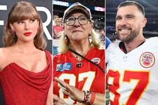 El aspecto del conjunto de los Jefes de Donna Kelce estaba atiborrado de referencias de Taylor Swift y Travis Kelce aspecto del Donna estaba jefes juego Kelce lleno los ...