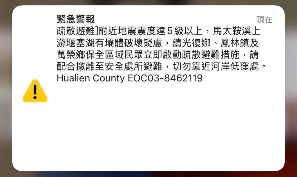 馬太鞍溪堰塞湖保全戶又收到疏散簡訊 花蓮縣府坦承誤發 | 社會 | 中央社 CNA