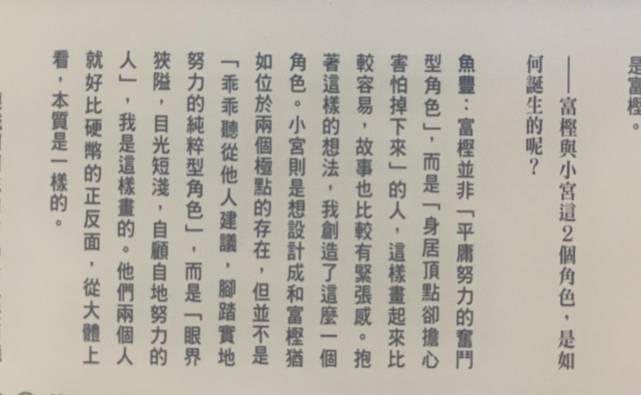 然後我看作者訪談,他兩個角色設定也稱得上相當非運動番主流: