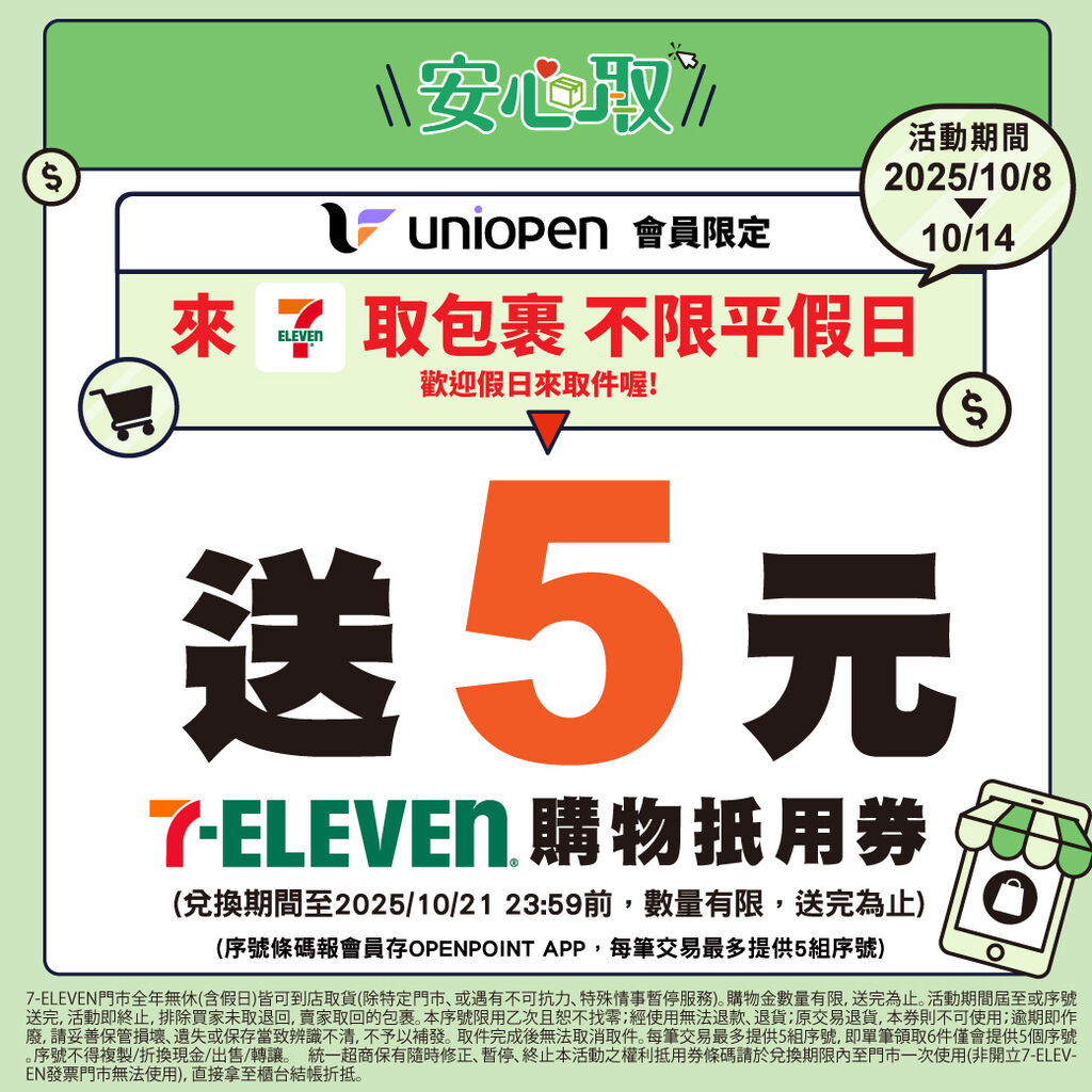 7-11包裹安心取抵用券5元