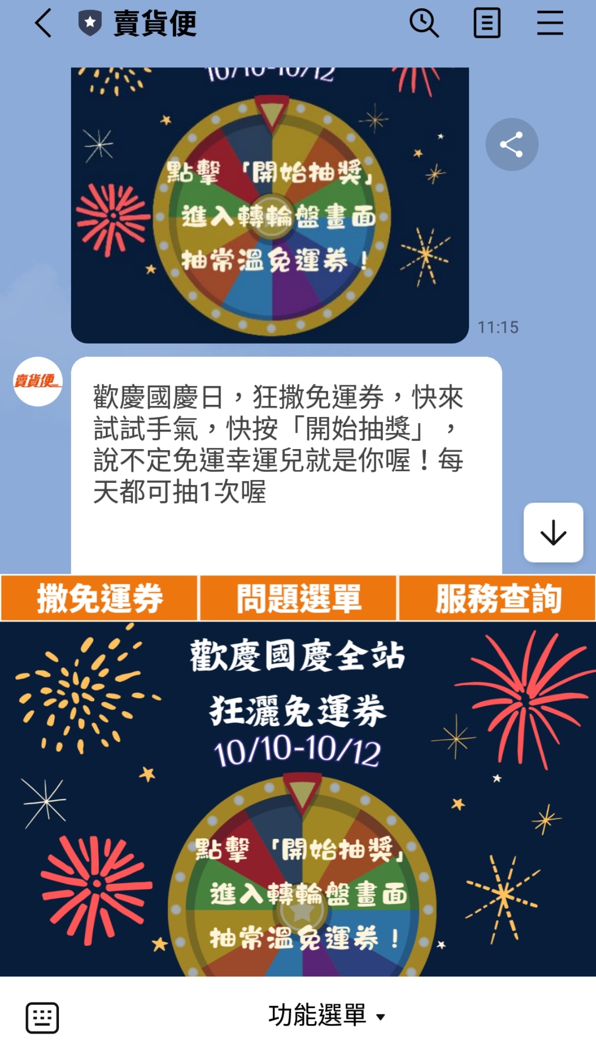 謝謝噗主~另外國慶連假也有賣貨便官方line的免運券抽抽活動喔!