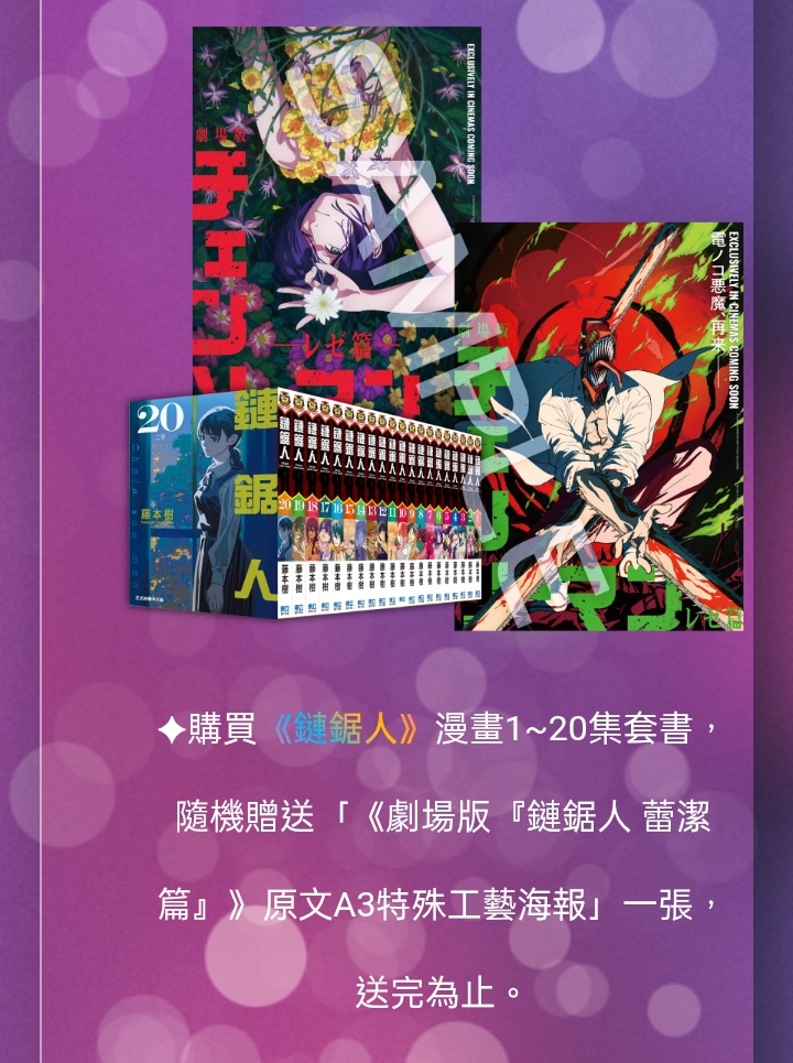 ✦購買《鏈鋸人》漫畫1~20集套書,隨機贈送「《劇