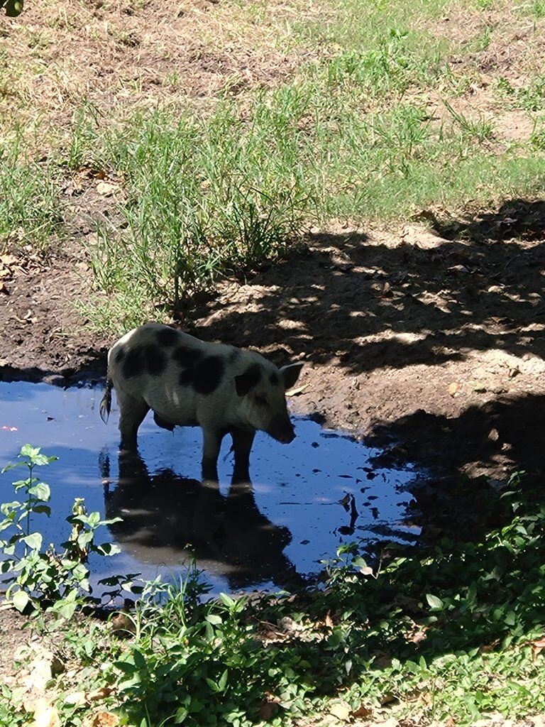 另外兩隻黑豬一開始沒注意到我,聽到我的聲音後跑開一段距離,又回頭看了我幾秒。