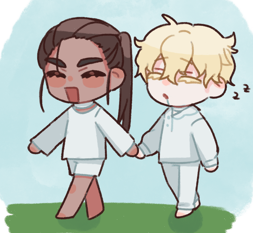 我就喜歡短褲運動au也好可愛 他們兩個十指緊扣欸......他們是真的(?)