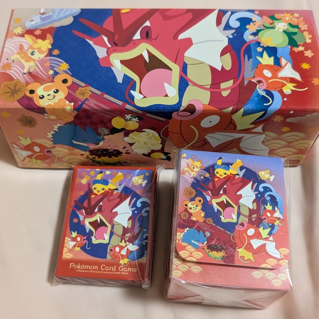 但我最近還有在社團想說路過標標看,然後不小心標到一套沒有卡片的禮盒,不過我是真的覺得這個紅色暴鯉龍的圖好好看喔,卡盒卡套這樣一整套超好看的。好像是廣島禮盒吧。之後如果有什麼紅色暴鯉龍復刻感覺可以拿來配