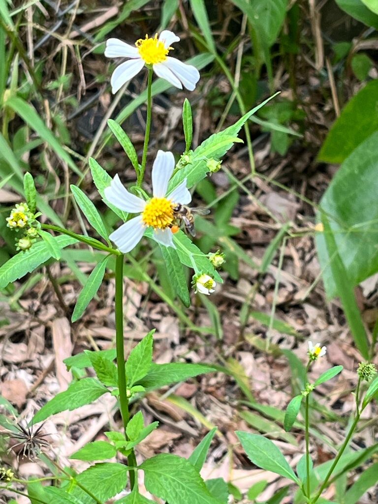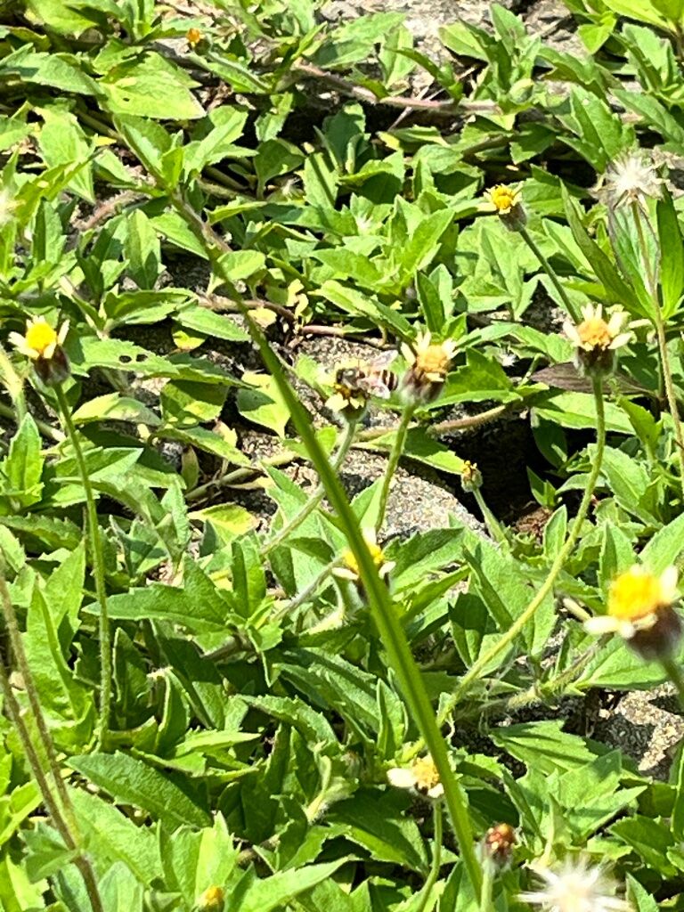 還有一隻蜜蜂已經採到花粉粒了喔