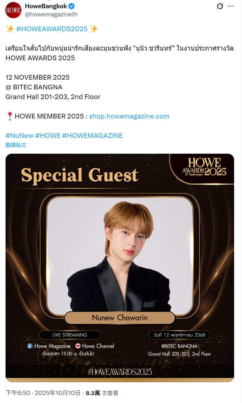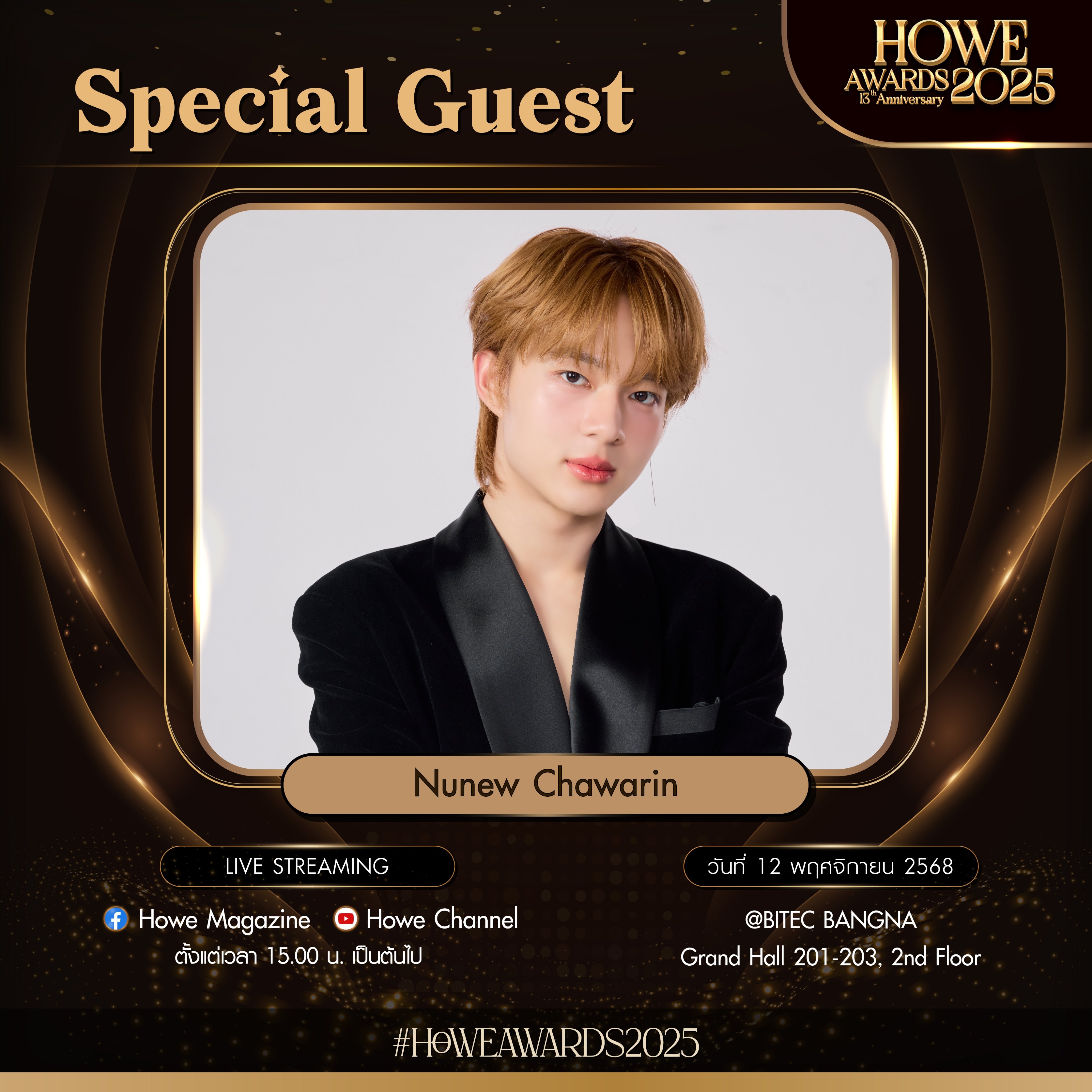 準備好在 2025 年 HOWE AWARDS 頒獎典禮上被迷人且聲音甜美的年輕人NuNew Chawarin驚艷到吧!