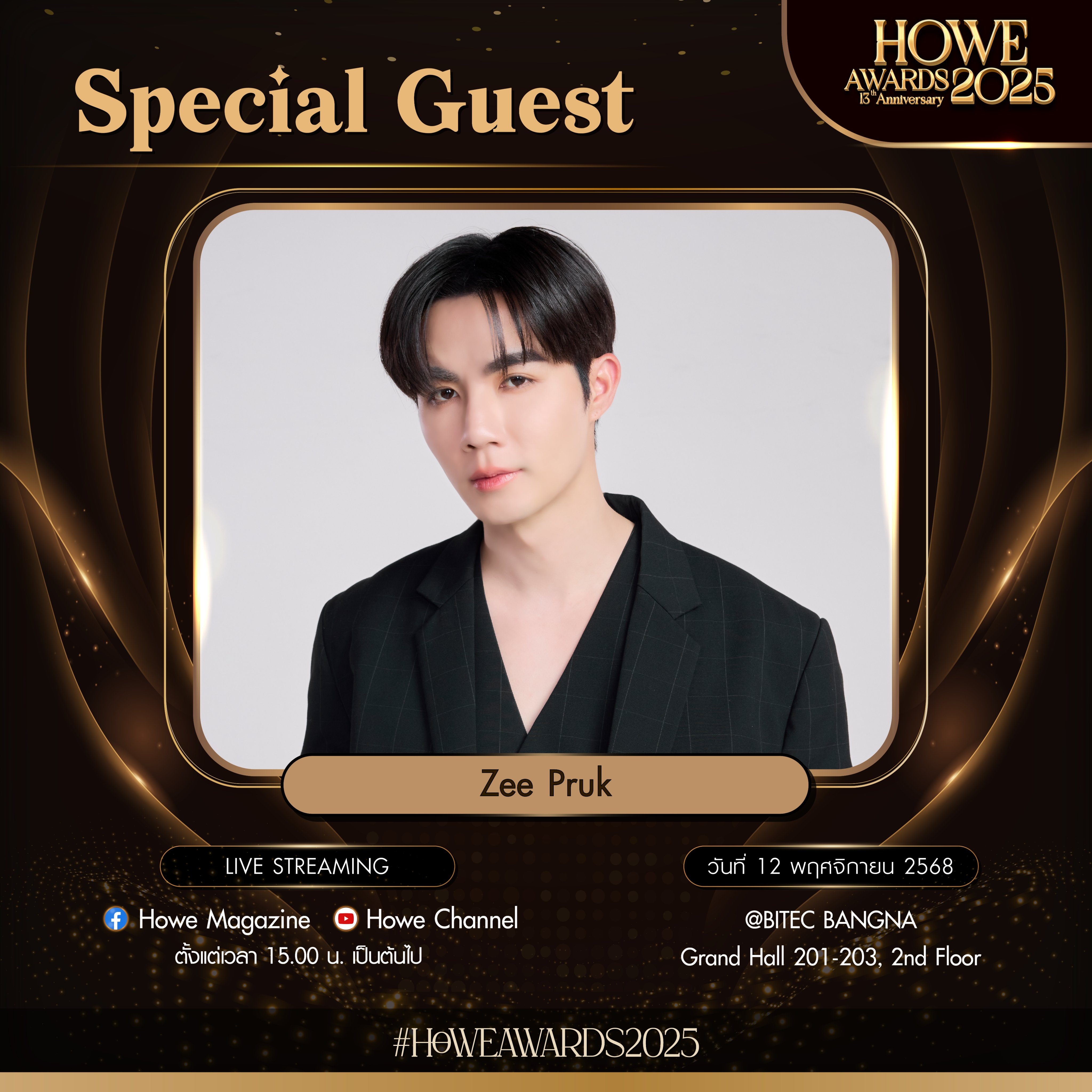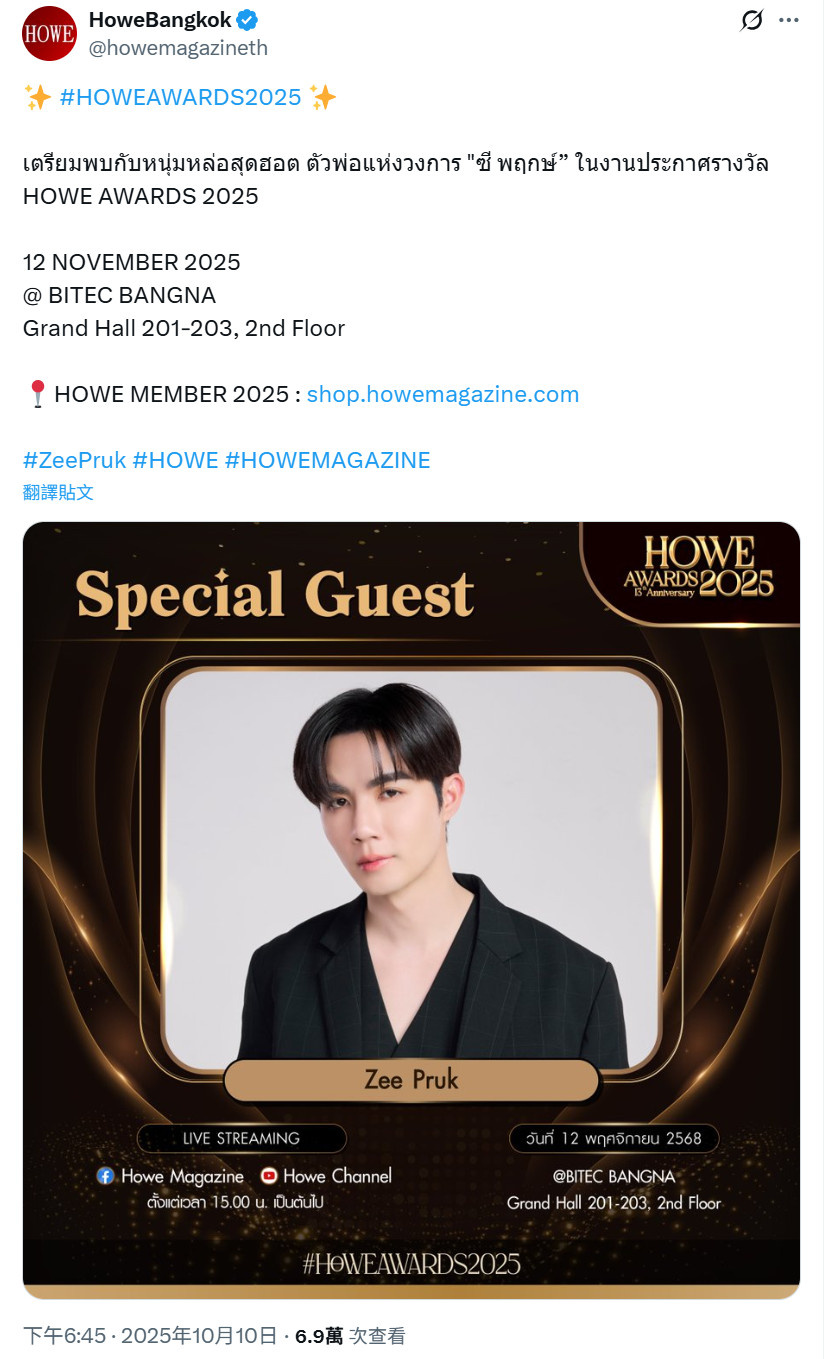 準備好在 HOWE AWARDS 2025 頒獎典禮上見到業內最炙手可熱、最帥氣的男人Zee Pruk吧!