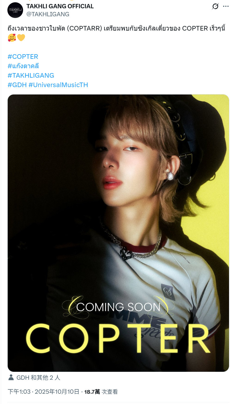💭:“螺旋槳”人(COPTARR)的時刻到了!準備與COPTER的個人單曲見面,很快喔~