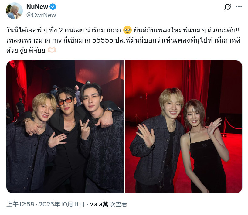 N:今天見到兩位前輩啦,真的太可愛啦🥹 恭喜P'BamBam新歌!!歌好聽,MV也讓人好害羞呢55555 PS