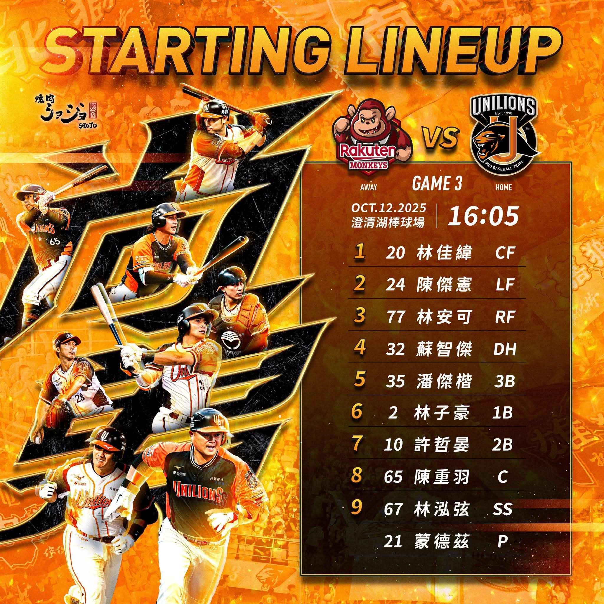 統一獅隊G3先發打線: